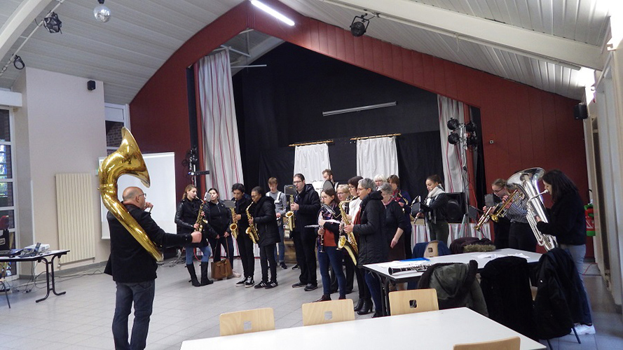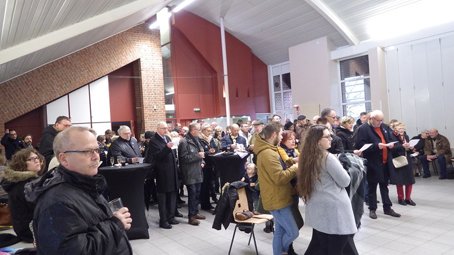 Nous nous sommes ensuite dirigés vers la salle multi spectacles où l’ensemble musical de Quérénaing a joué « le chant des partisans » repris par toutes les personnes présentes. La troupe théâtrale « La Réplique » de Sommaing sur Ecaillon nous a fait l’honneur de venir nous interpréter une petite pièce relatant la vie d’un soldat sur le front. Pour clôturer ces beaux moments, émouvants et solennels, des bonbons furent distribués aux enfants et le verre de l’amitié partagé.