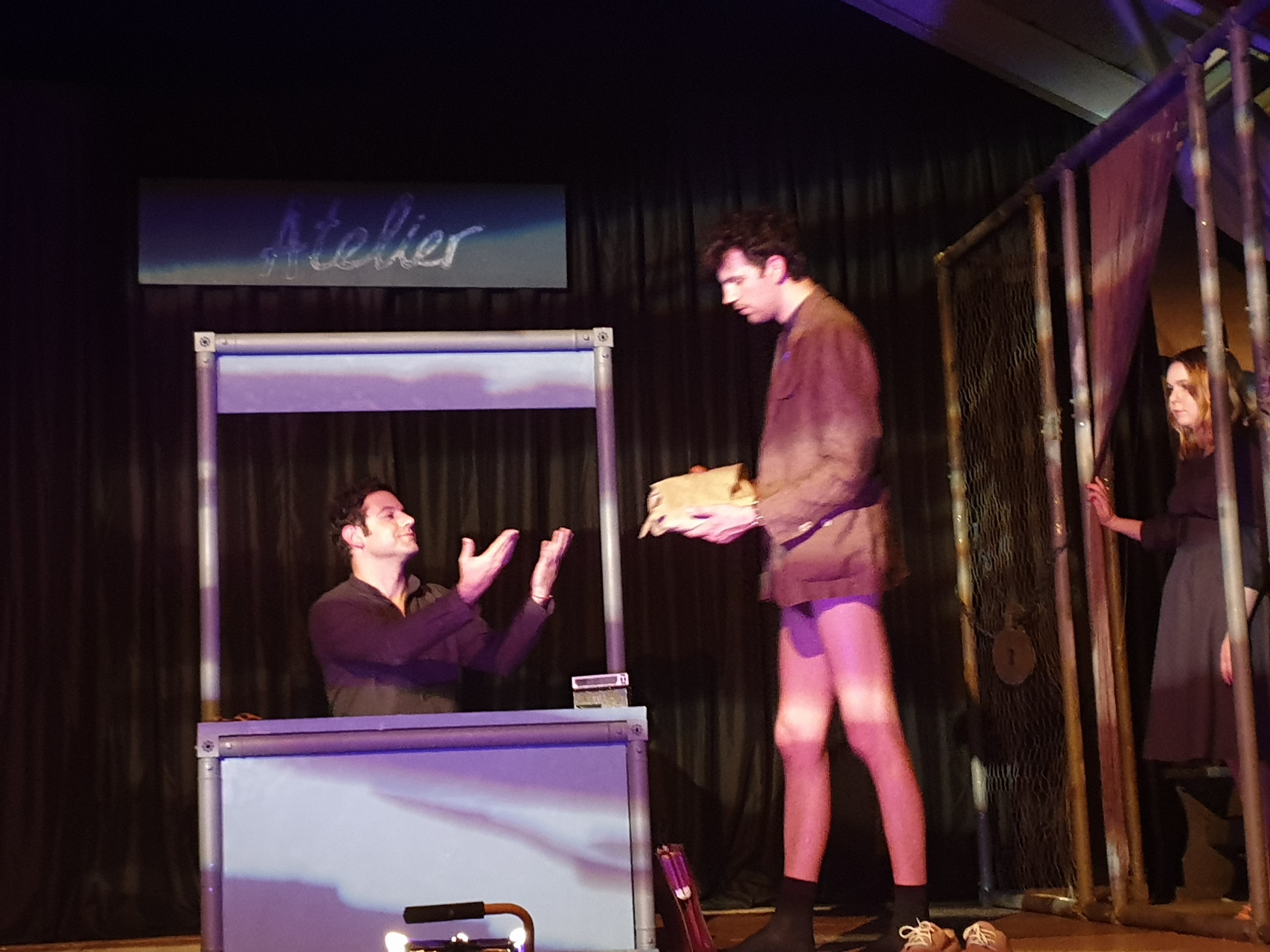 L’ouverture du 3ème Festival Théâtre & Culturel de Quérénaing a eu lieu le Vendredi 26 Avril avec la Compagnie C’est-pas-du-jeu qui a joué « La vie bien qu’elle soit courte ». C’est une oeuvre du Bulgare Stanislas Stratiev qui, avec une fausse légèreté, dénonce les travers d’une société oppressive et montre les questionnements d’un intellectuel étouffé par son environnement. Durant plus d’1h15, cette pièce de théâtre dénonce avec beaucoup d’humour les excès et l’absurdité des règlements administratifs, et aussi la méfiance des gens entre eux. Le public a apprécié la mise en scène originale, le travail énorme de justesse, de précision des 3 comédiens (Sophie, Léonard et Tchavdar), sans oublier Simon à la technique.