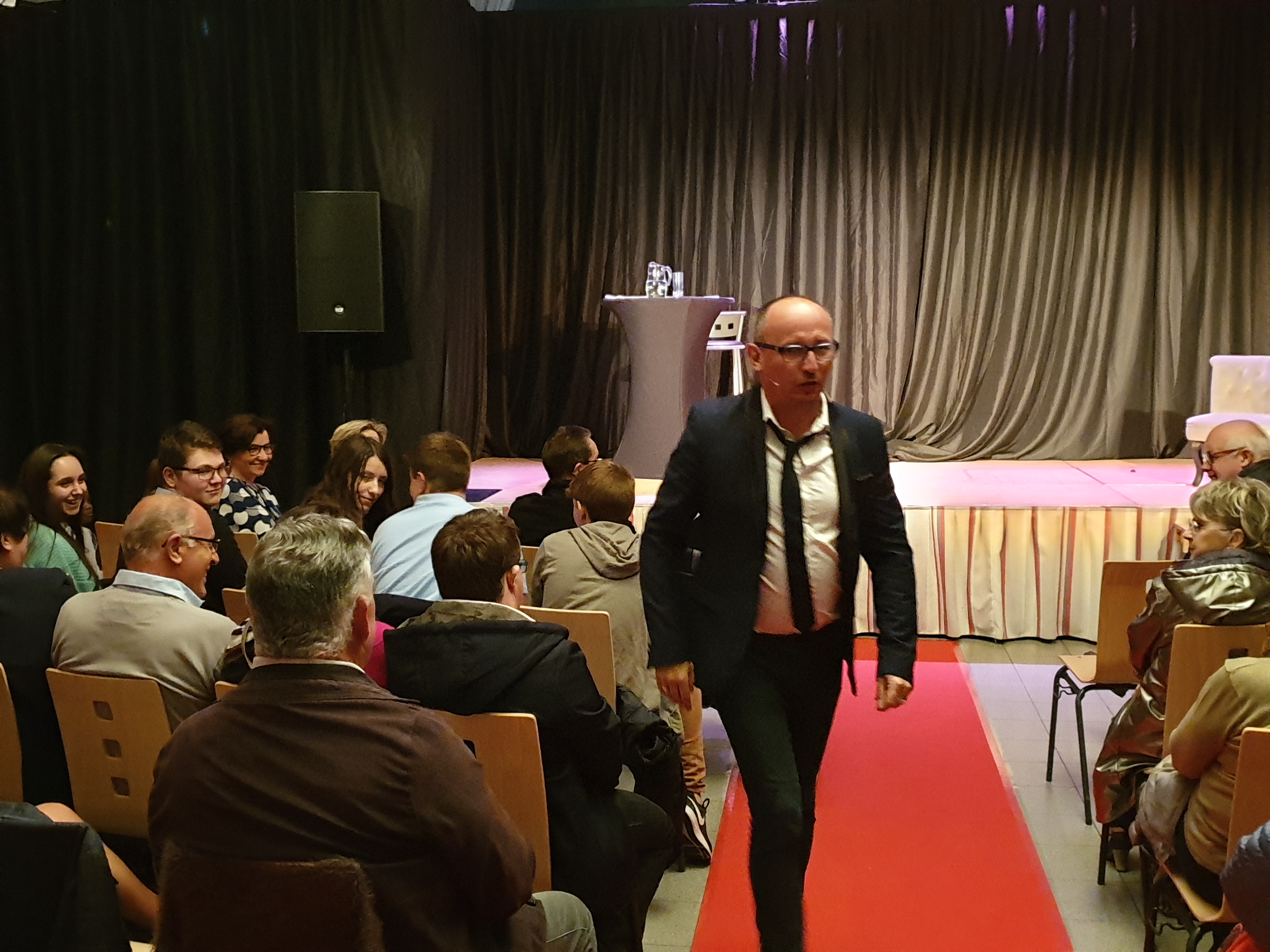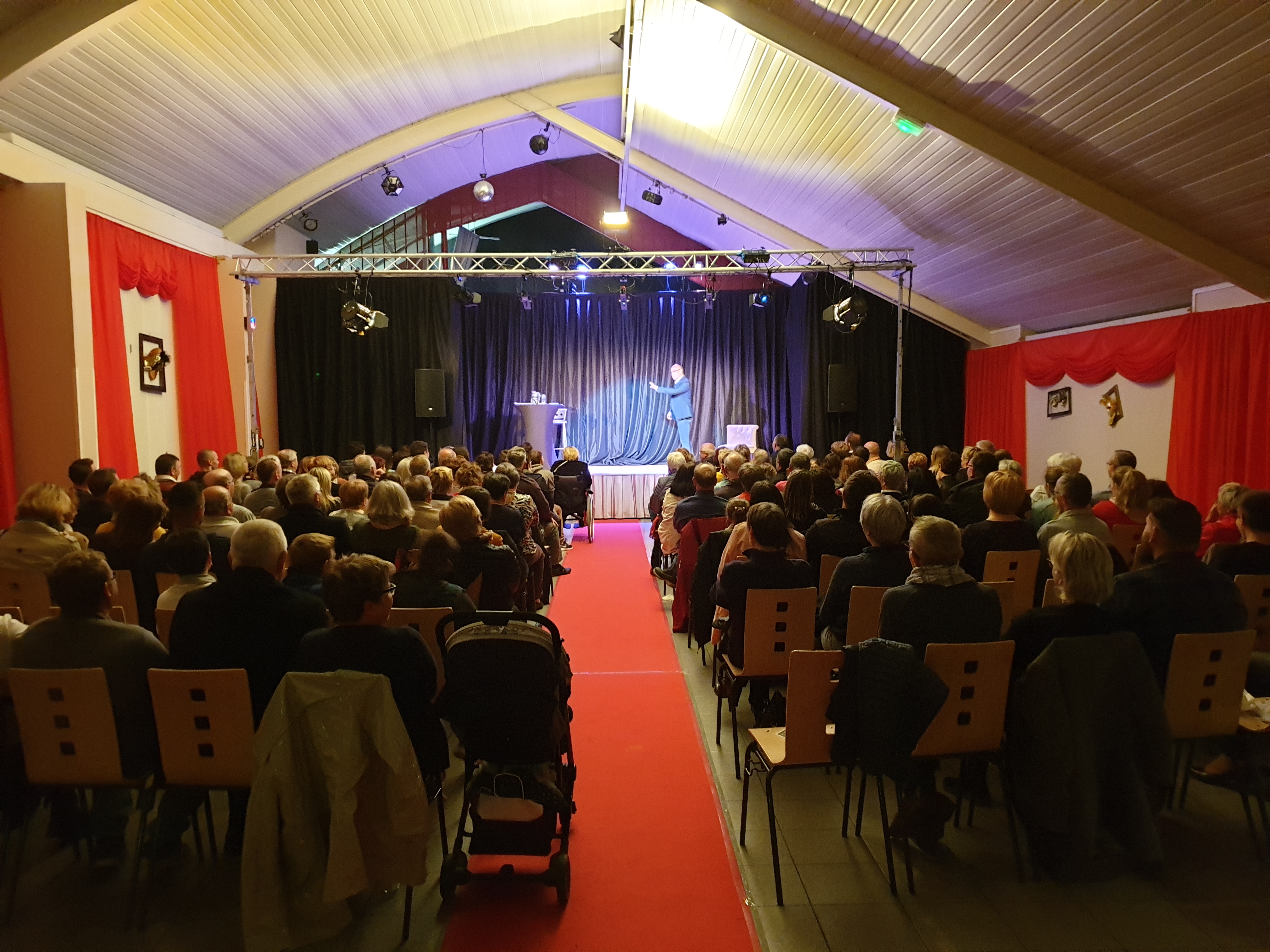 Le samedi soir, c’est l’humoriste et comédien ZEF, qui était sur la scène Multispectacles de Quérénaing pour cette 2ème journée du Festival Théâtre & Culturel. Durant plus de 2h, l’artiste a mis en scène ce que nous avons toutes et tous vécu avec nos propres repères. Fille, garçon, mère, père, grand’mère, grand’père, ZEF a retracé avec justesse, émotion et drôlerie les différents tableaux de notre vie, où chacun a retrouvé son propre champ d’expérience. Le public a rit du début à la fin du spectacle et est reparti enchanté de sa soirée.