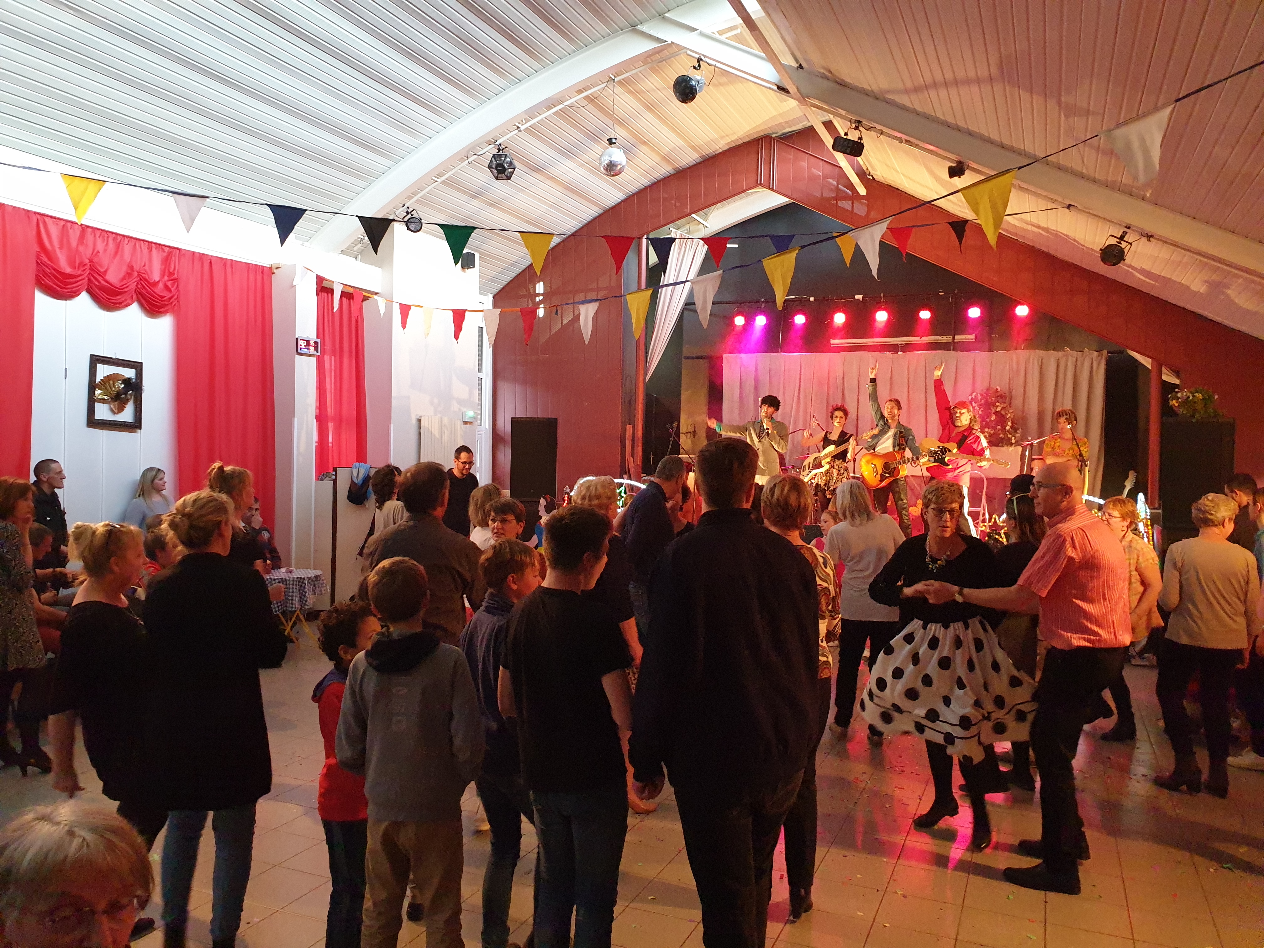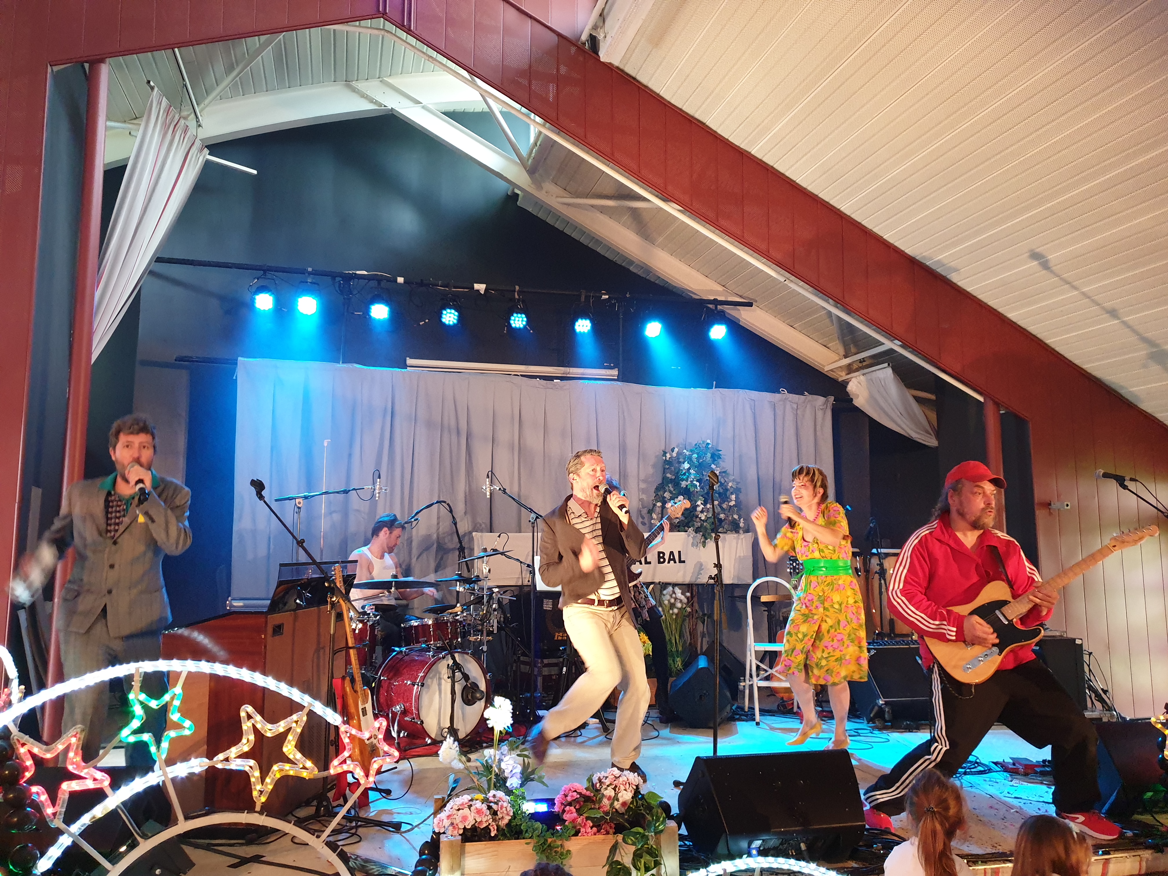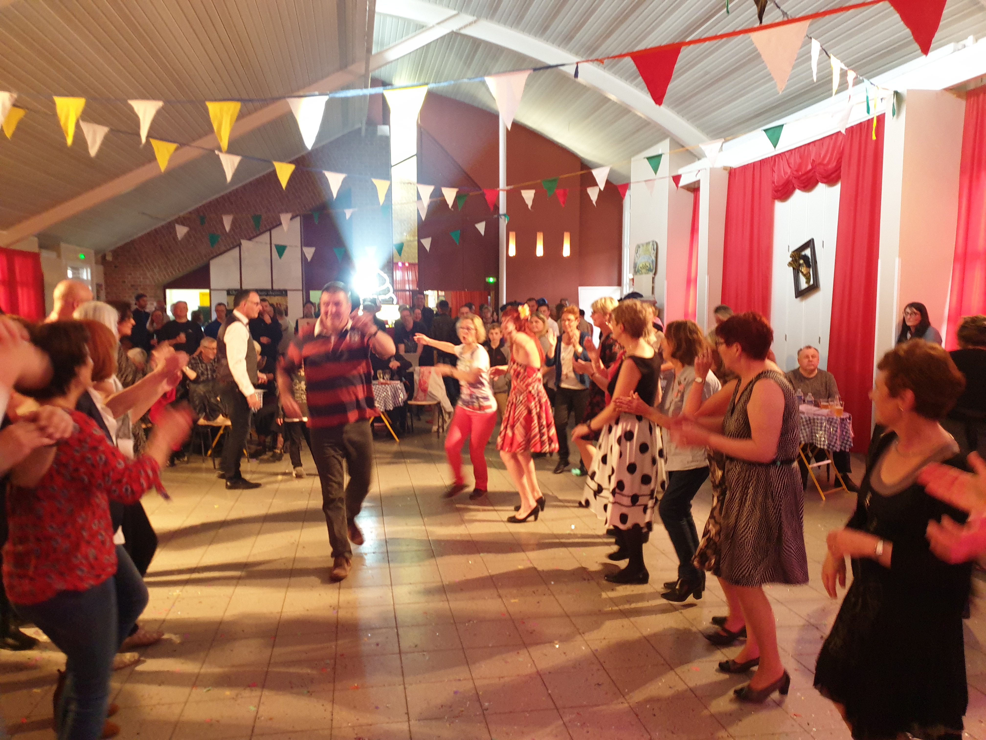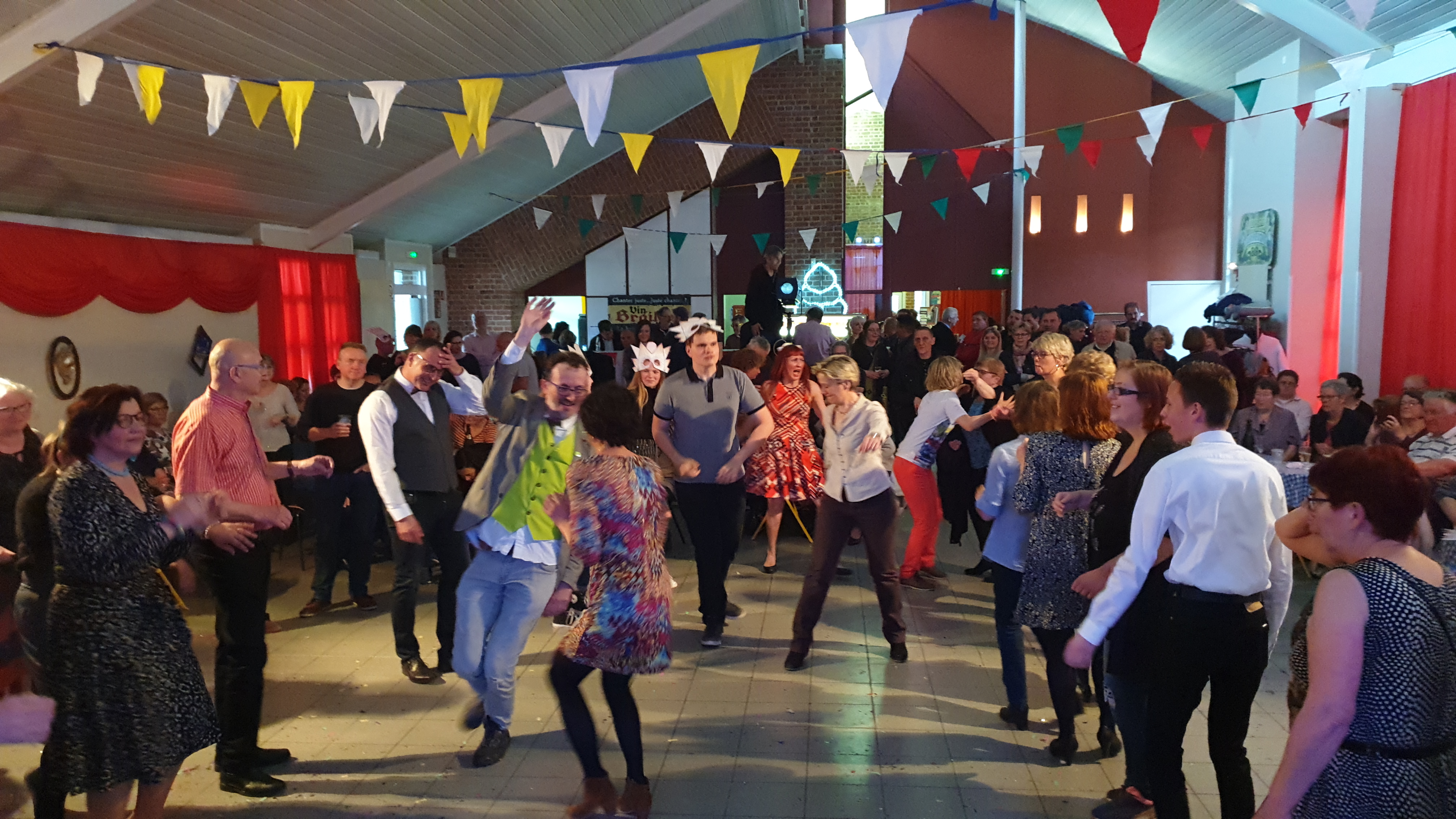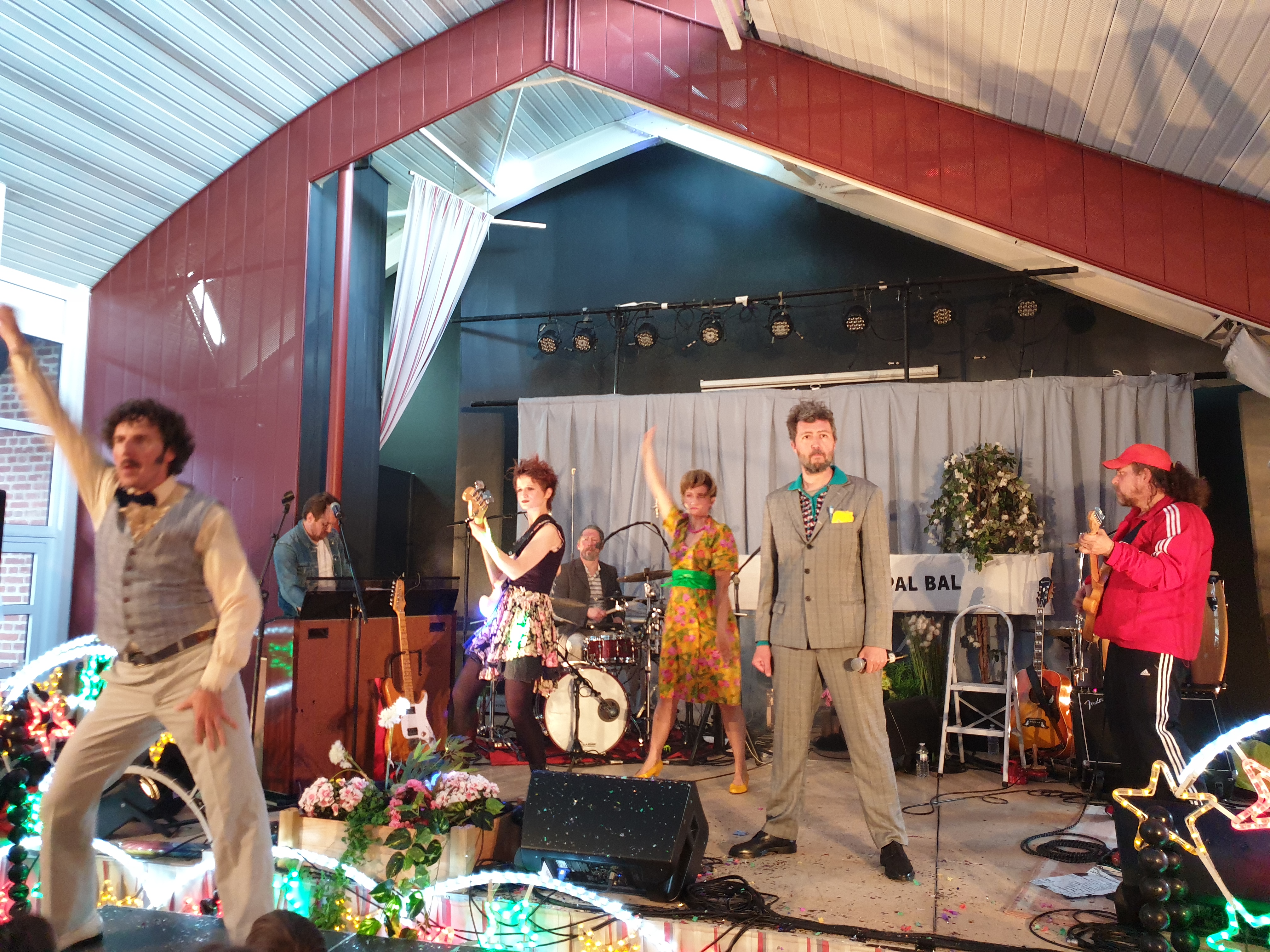 Pour clôturer le Festival Théâtre & Culturel, c’est à un bal pas tout à fait comme les autres auquel le public été convié à la salle Multispectacles de Quérénaing le Dimanche 28 Avril. La fin d’après-midi et la soirée se sont annoncées hautes en couleurs. Les six chanteurs-musiciens et nos 2 artistes ambianceurs, ont enflammé la piste durant plus de 2h30. Pour tous les participants ça été un moment de fête, de convivialité et de partage unique. Une ambiance de folie a régné sur le village de Quérénaing.