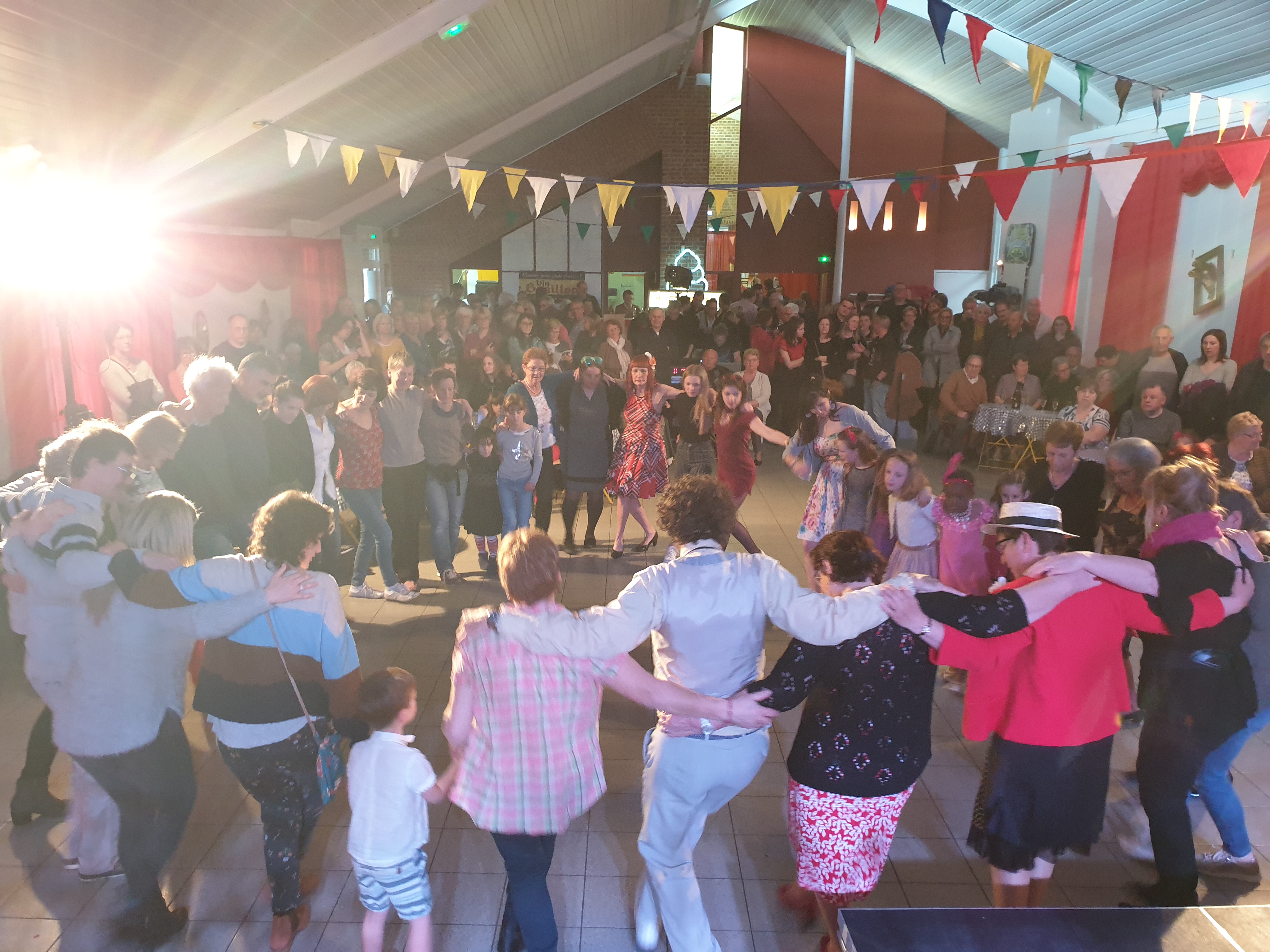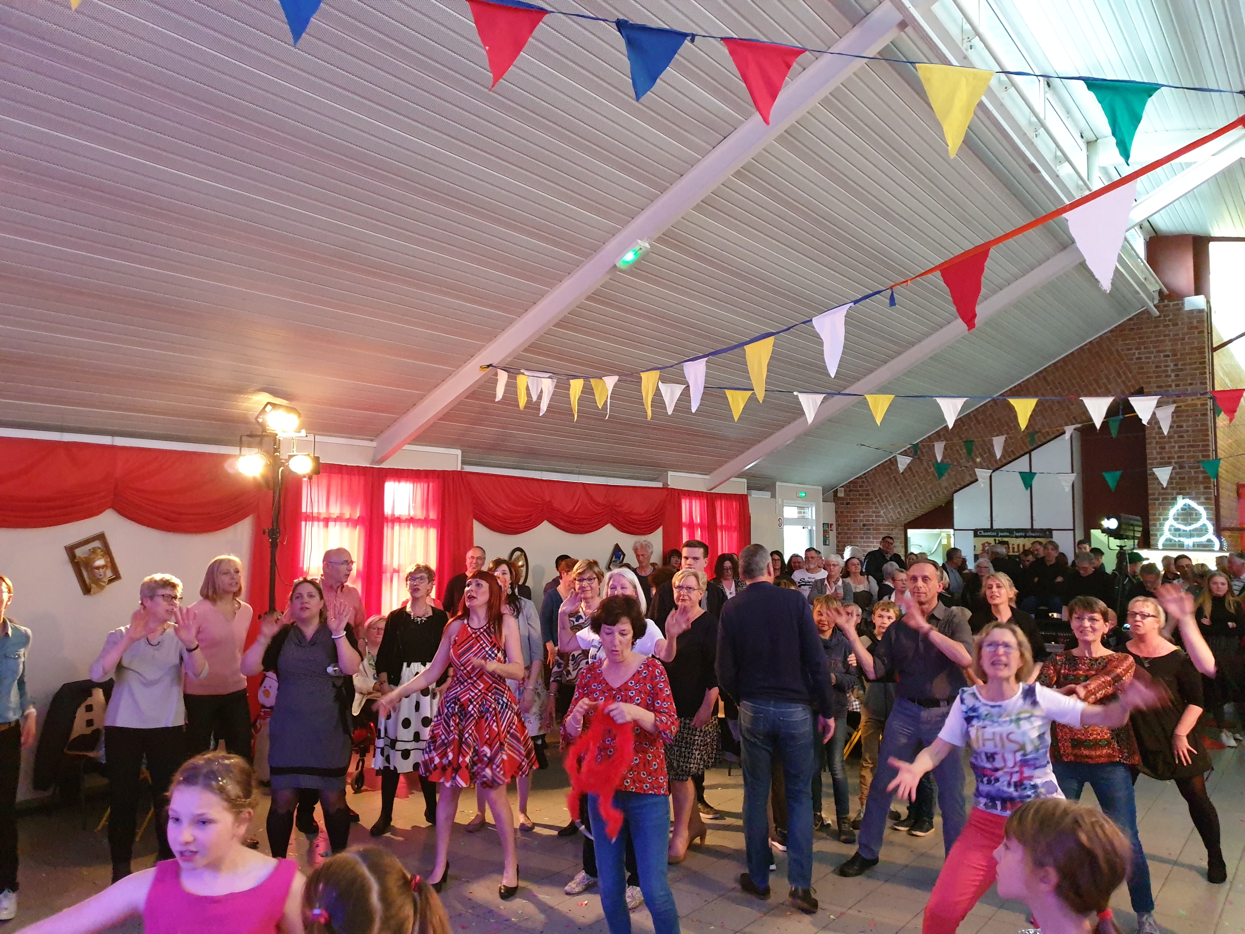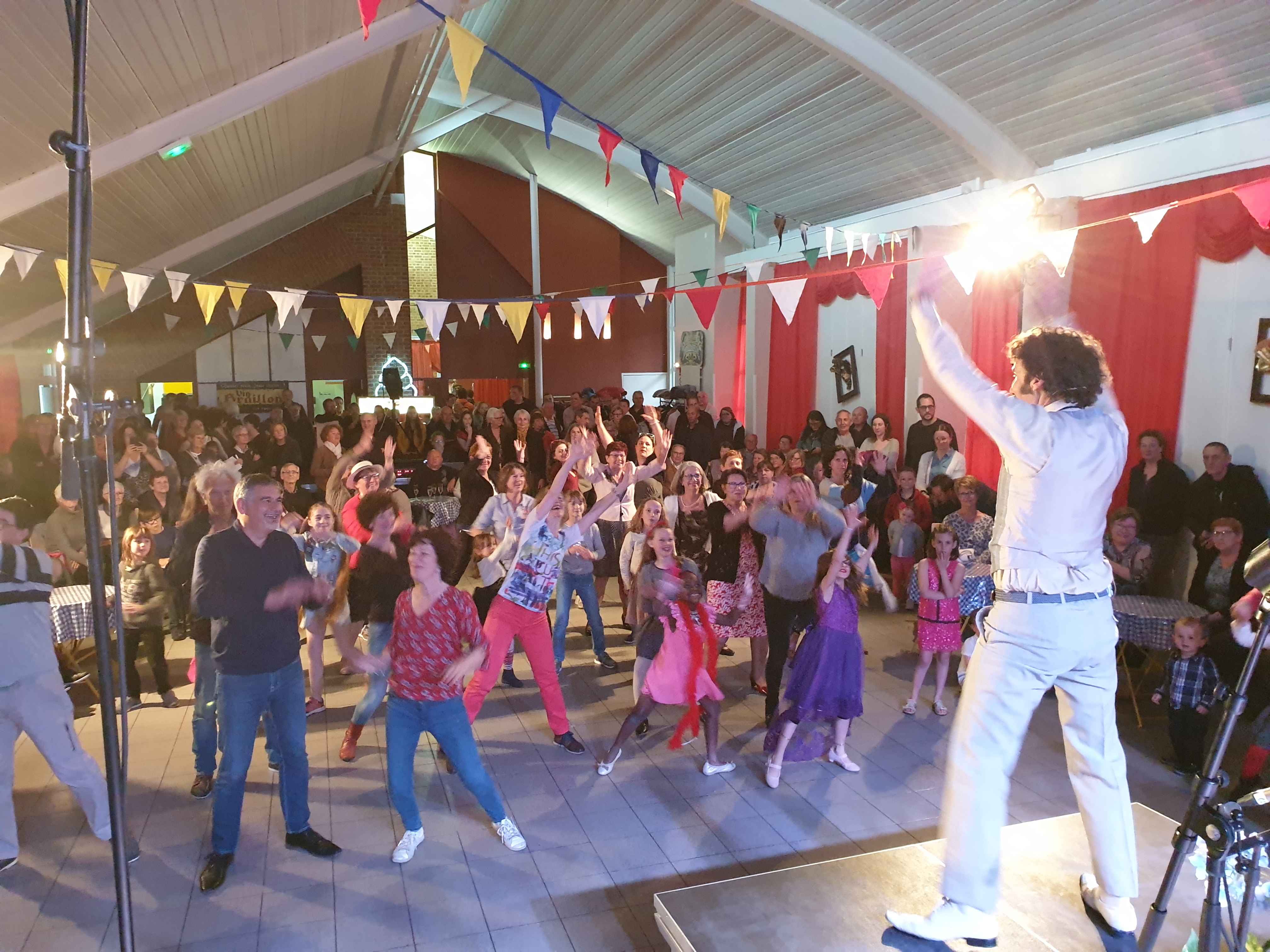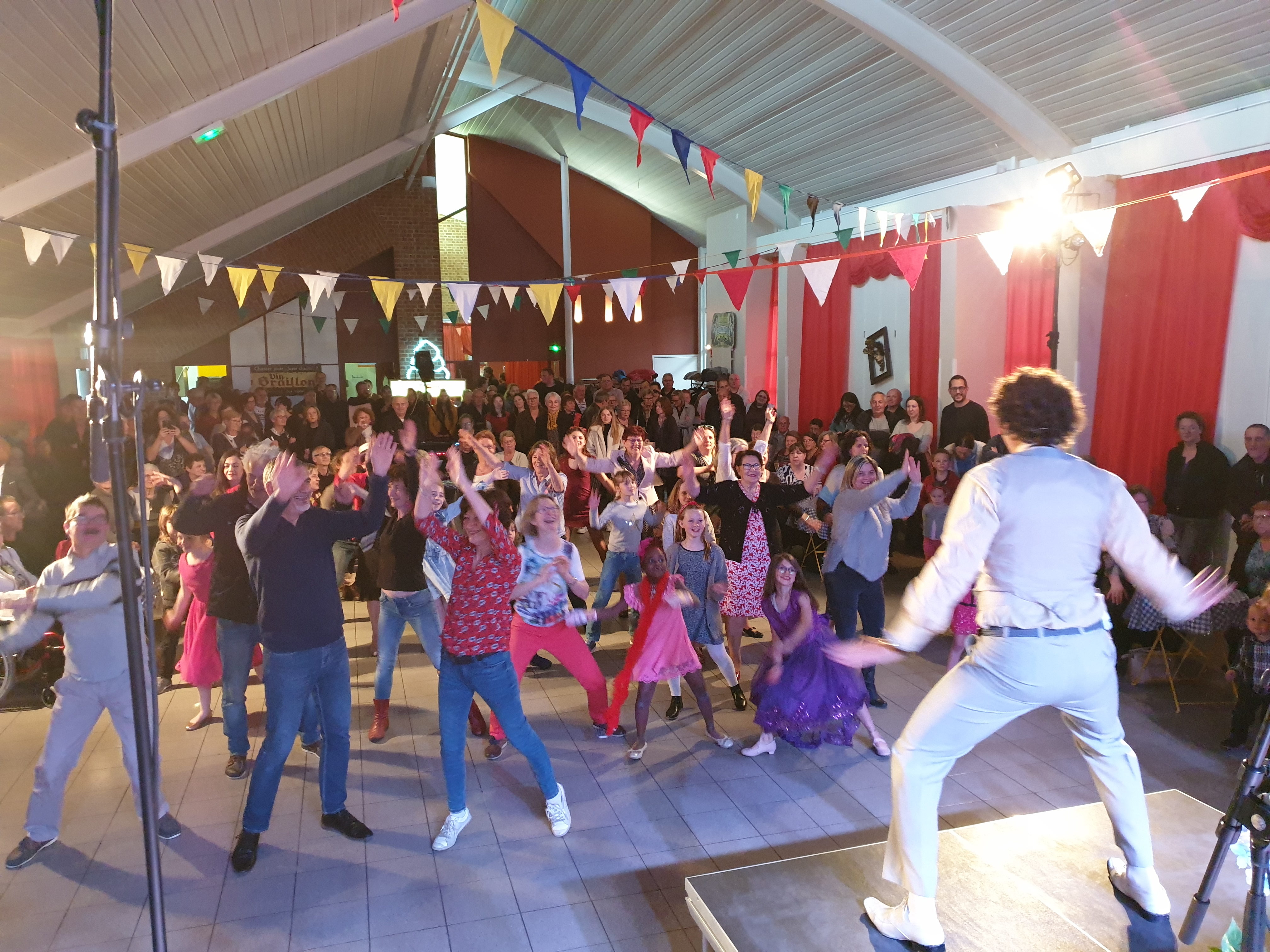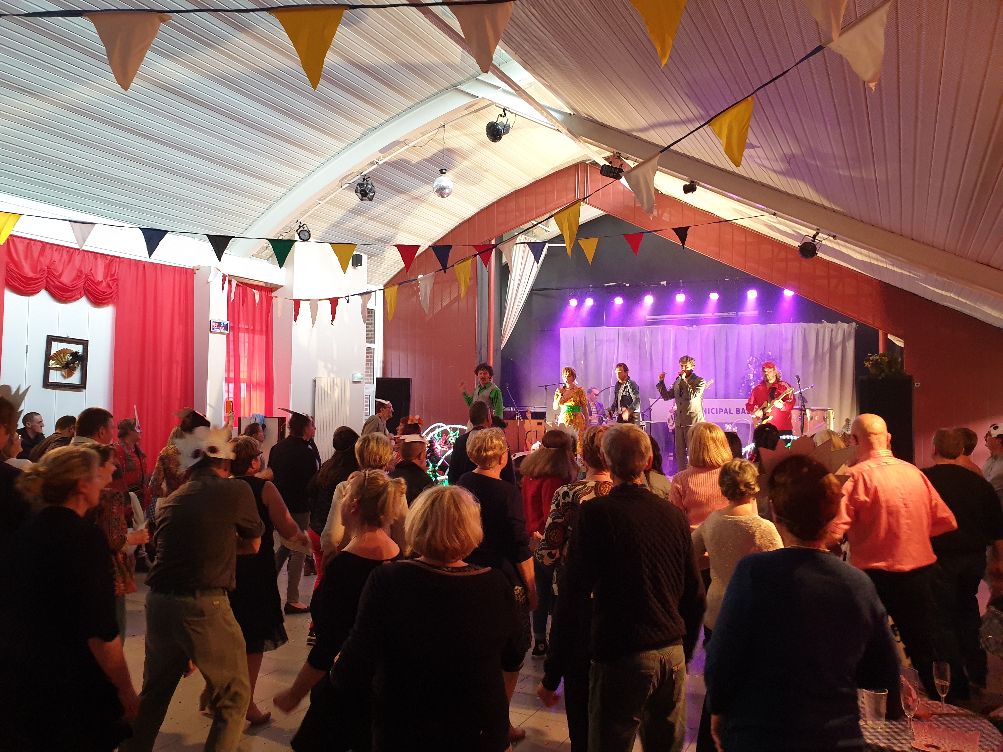 Pour clôturer le Festival Théâtre & Culturel, c’est à un bal pas tout à fait comme les autres auquel le public été convié à la salle Multispectacles de Quérénaing le Dimanche 28 Avril. La fin d’après-midi et la soirée se sont annoncées hautes en couleurs. Les six chanteurs-musiciens et nos 2 artistes ambianceurs, ont enflammé la piste durant plus de 2h30. Pour tous les participants ça été un moment de fête, de convivialité et de partage unique. Une ambiance de folie a régné sur le village de Quérénaing.