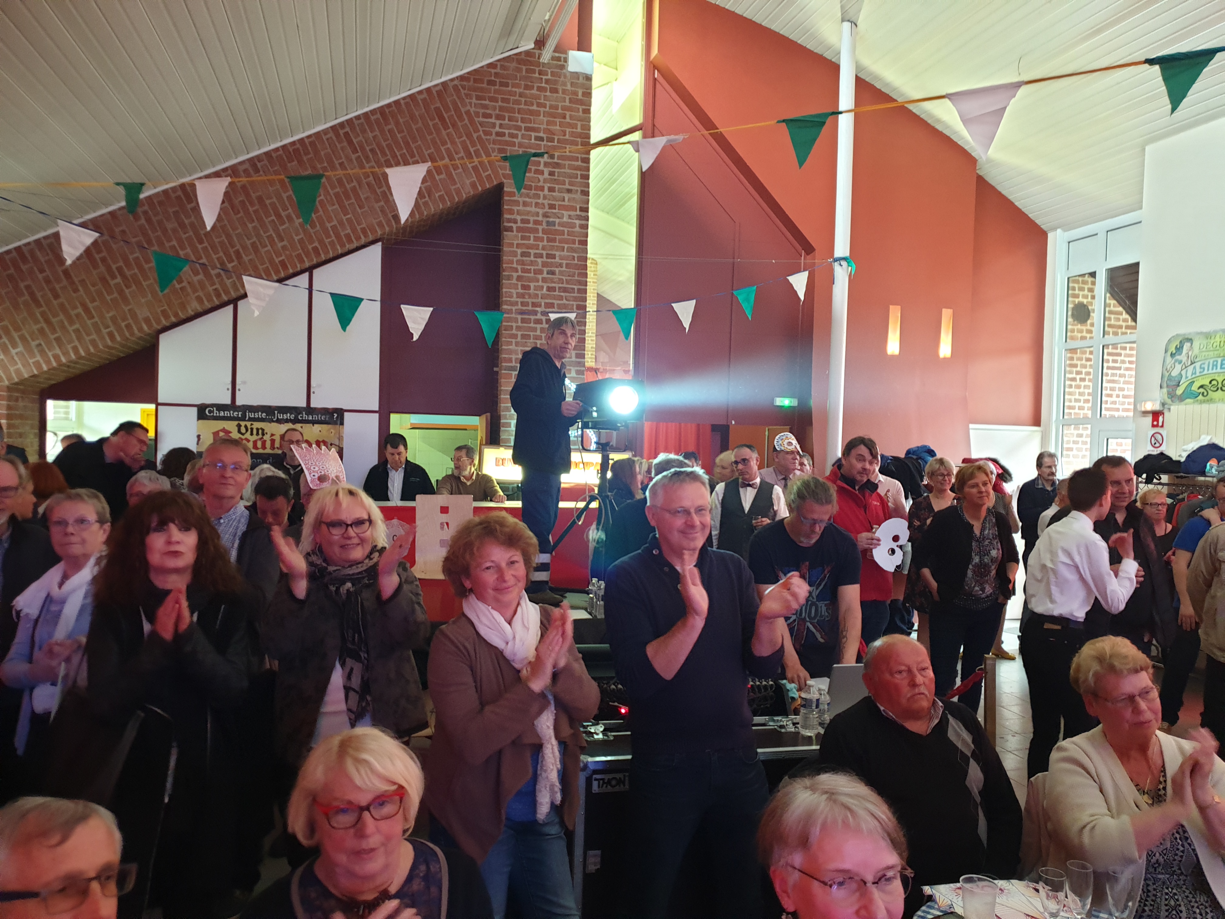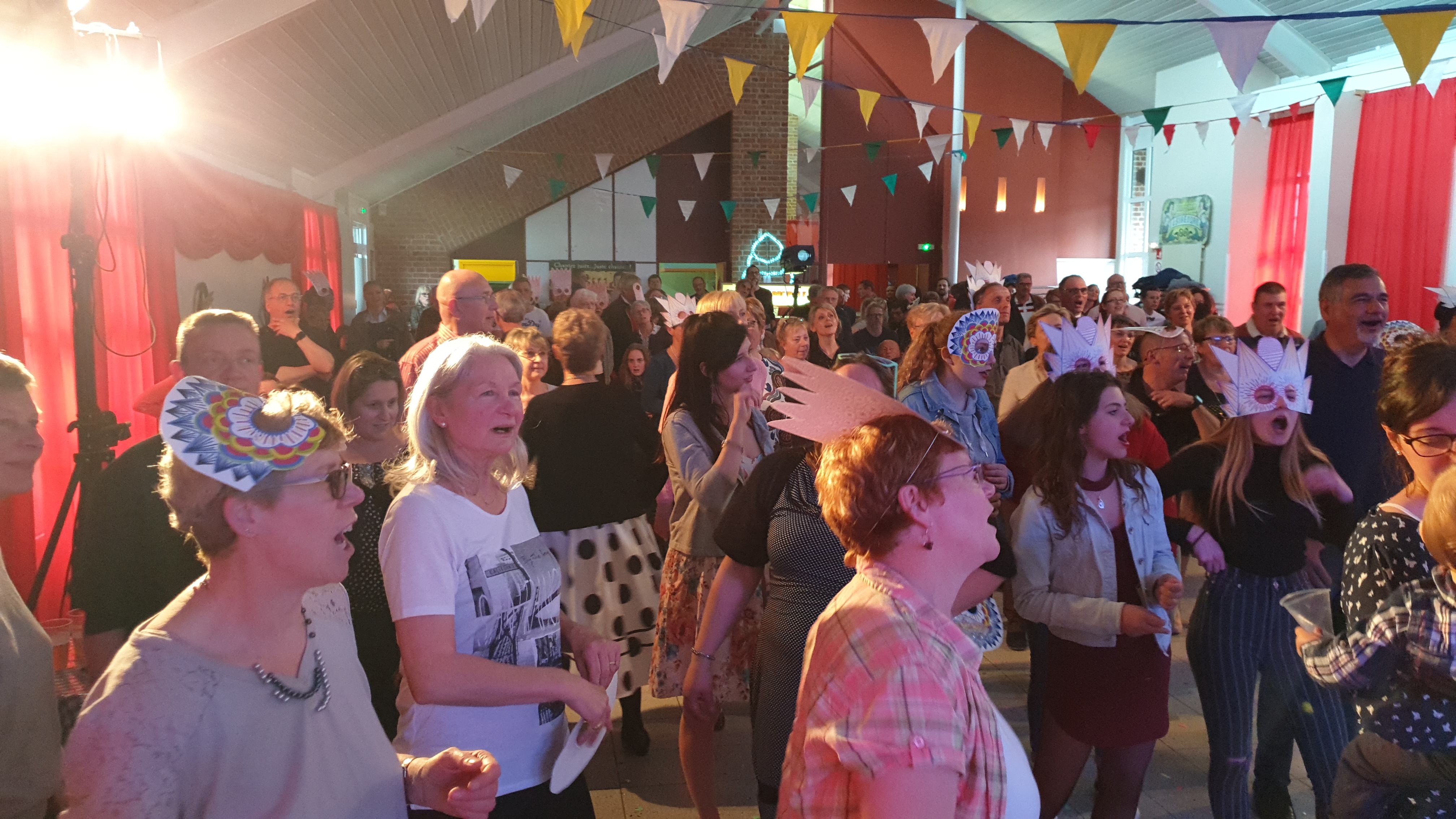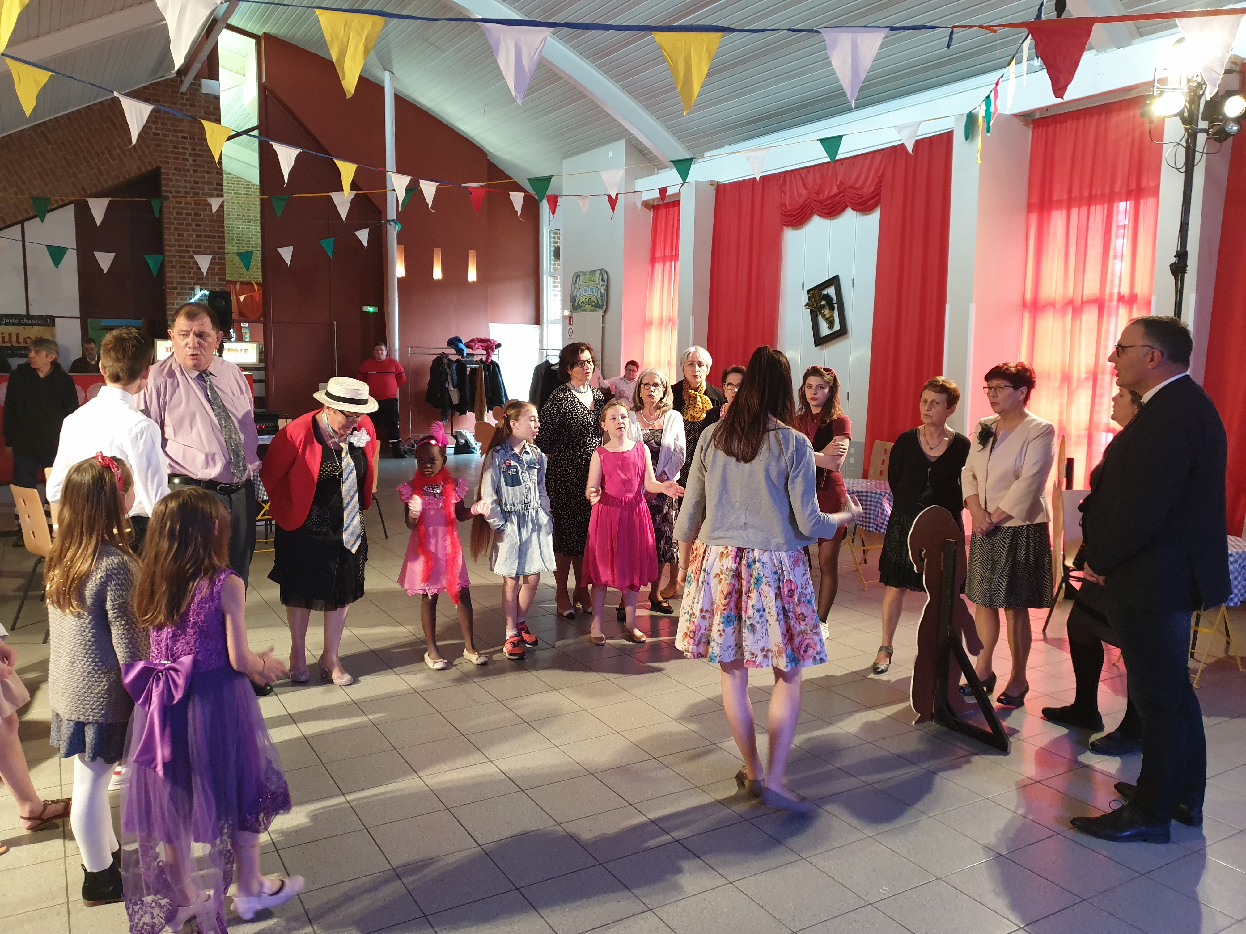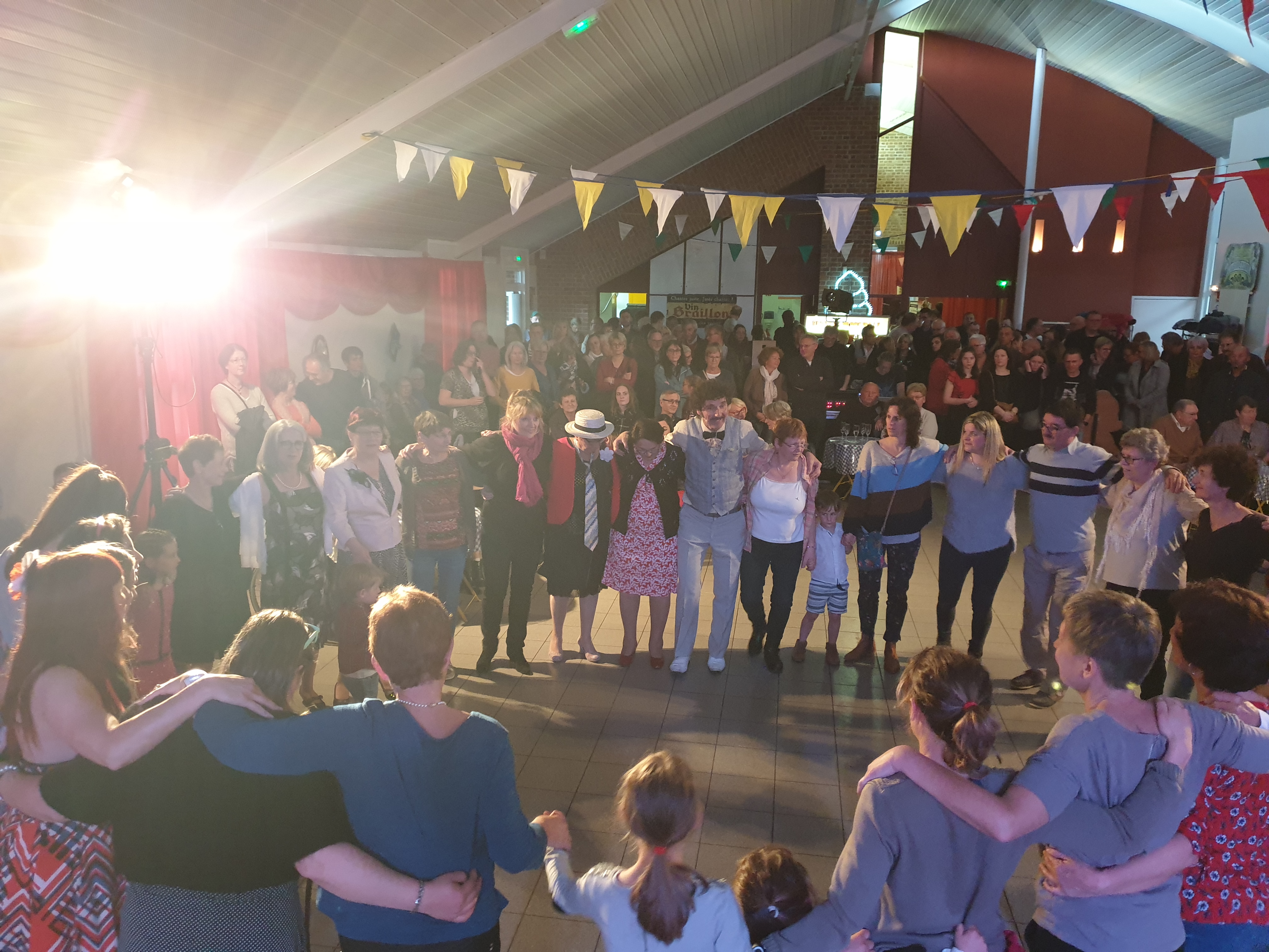Pour clôturer le Festival Théâtre & Culturel, c’est à un bal pas tout à fait comme les autres auquel le public été convié à la salle Multispectacles de Quérénaing le Dimanche 28 Avril. La fin d’après-midi et la soirée se sont annoncées hautes en couleurs. Les six chanteurs-musiciens et nos 2 artistes ambianceurs, ont enflammé la piste durant plus de 2h30. Pour tous les participants ça été un moment de fête, de convivialité et de partage unique. Une ambiance de folie a régné sur le village de Quérénaing.
