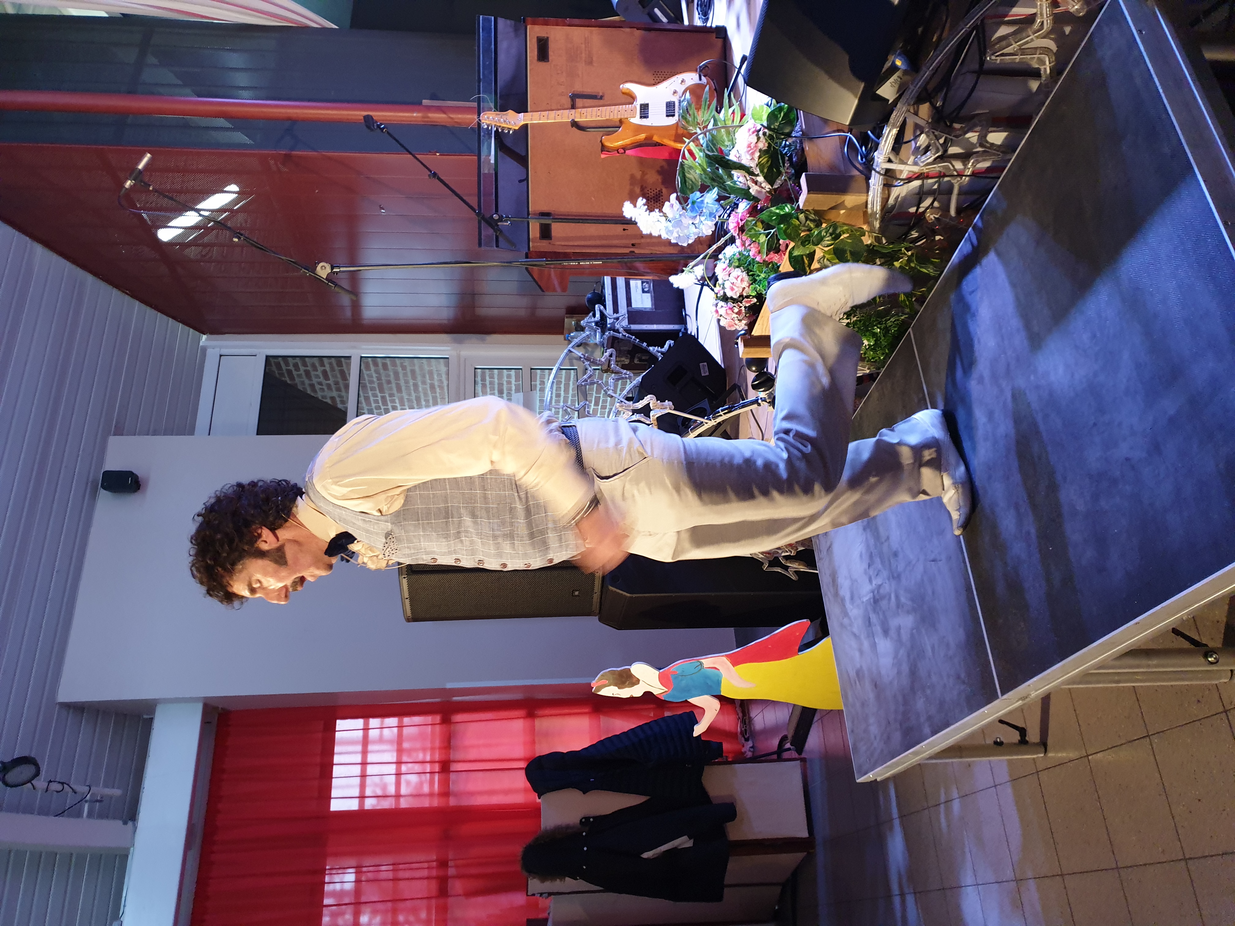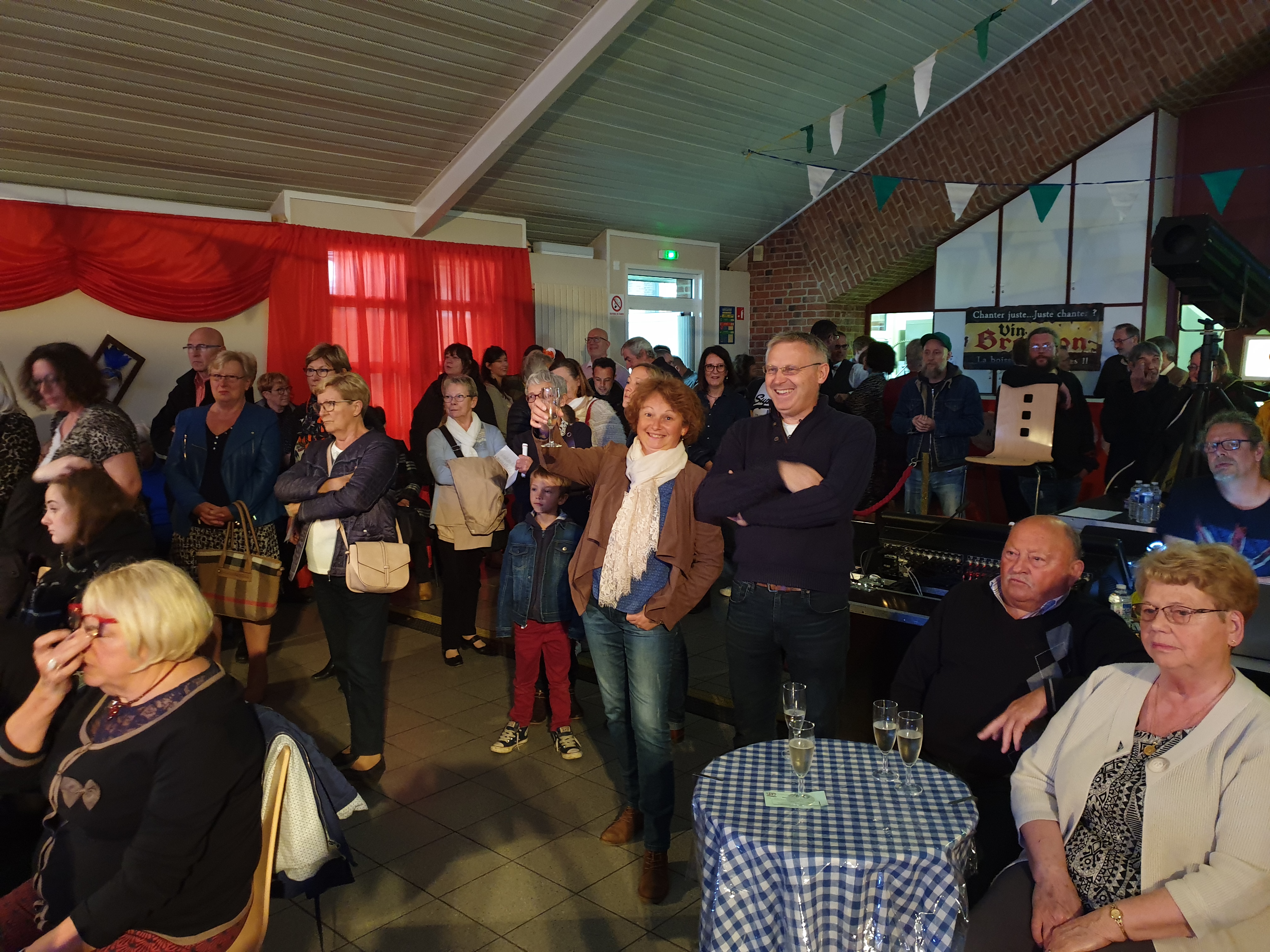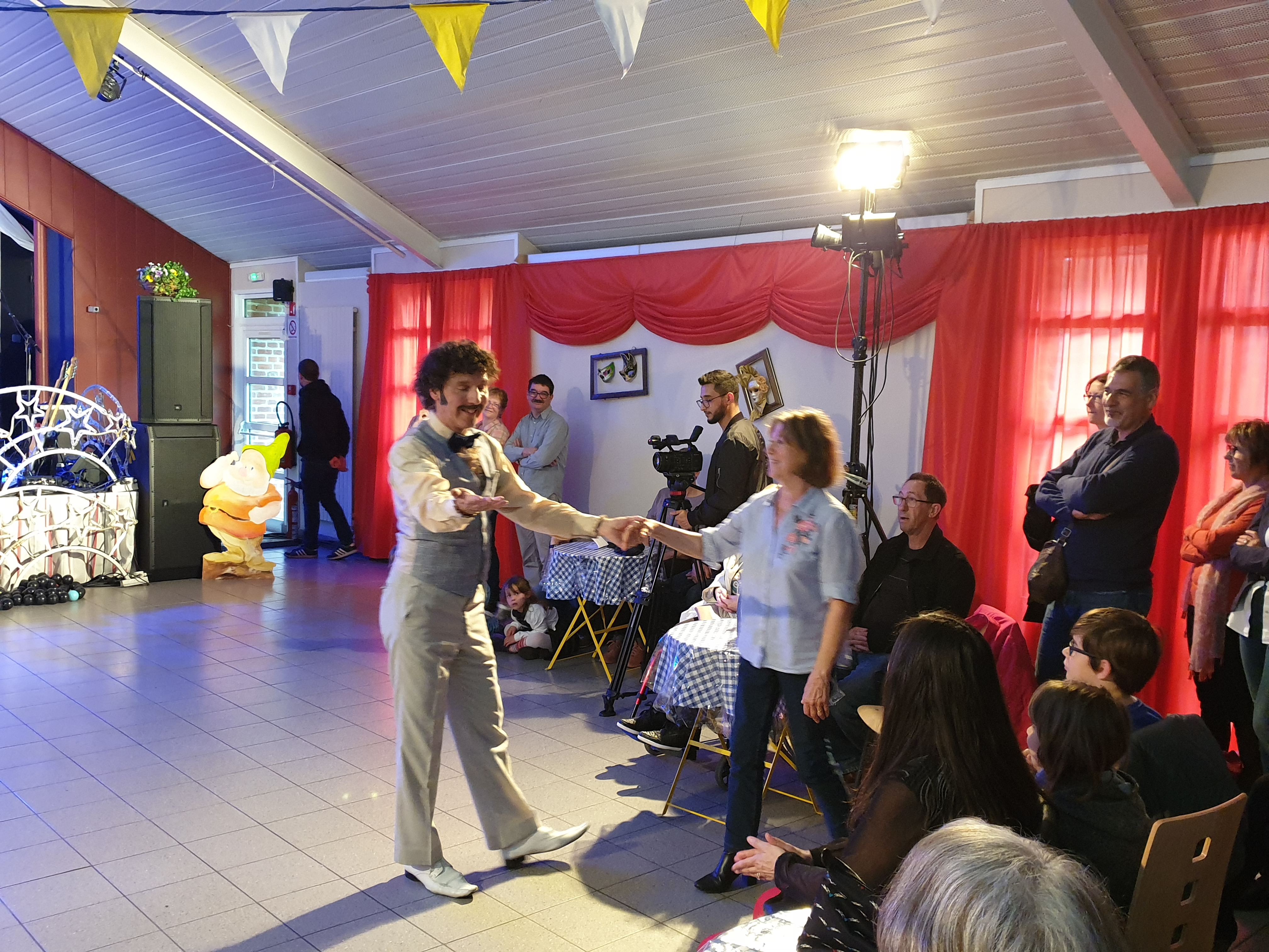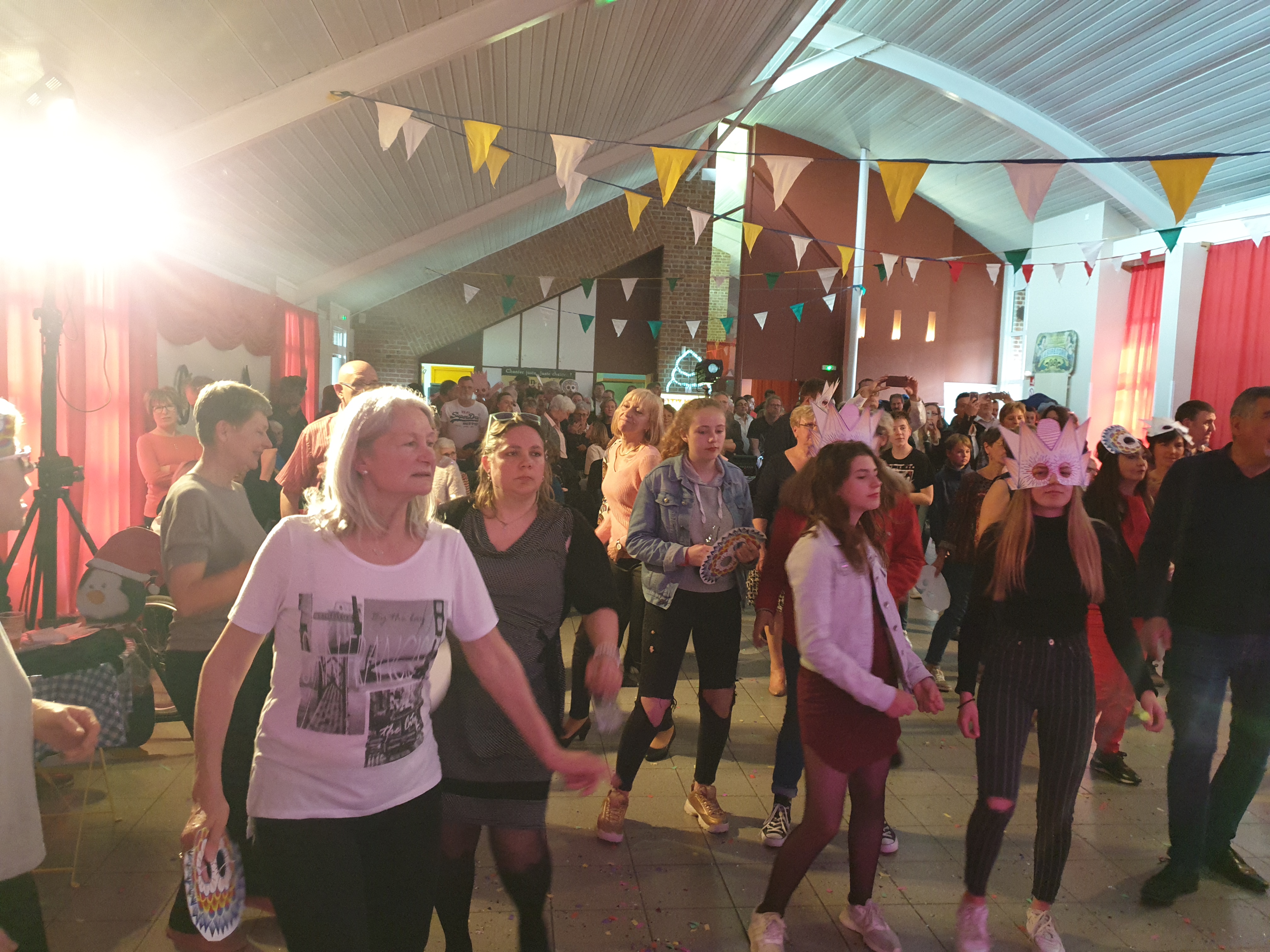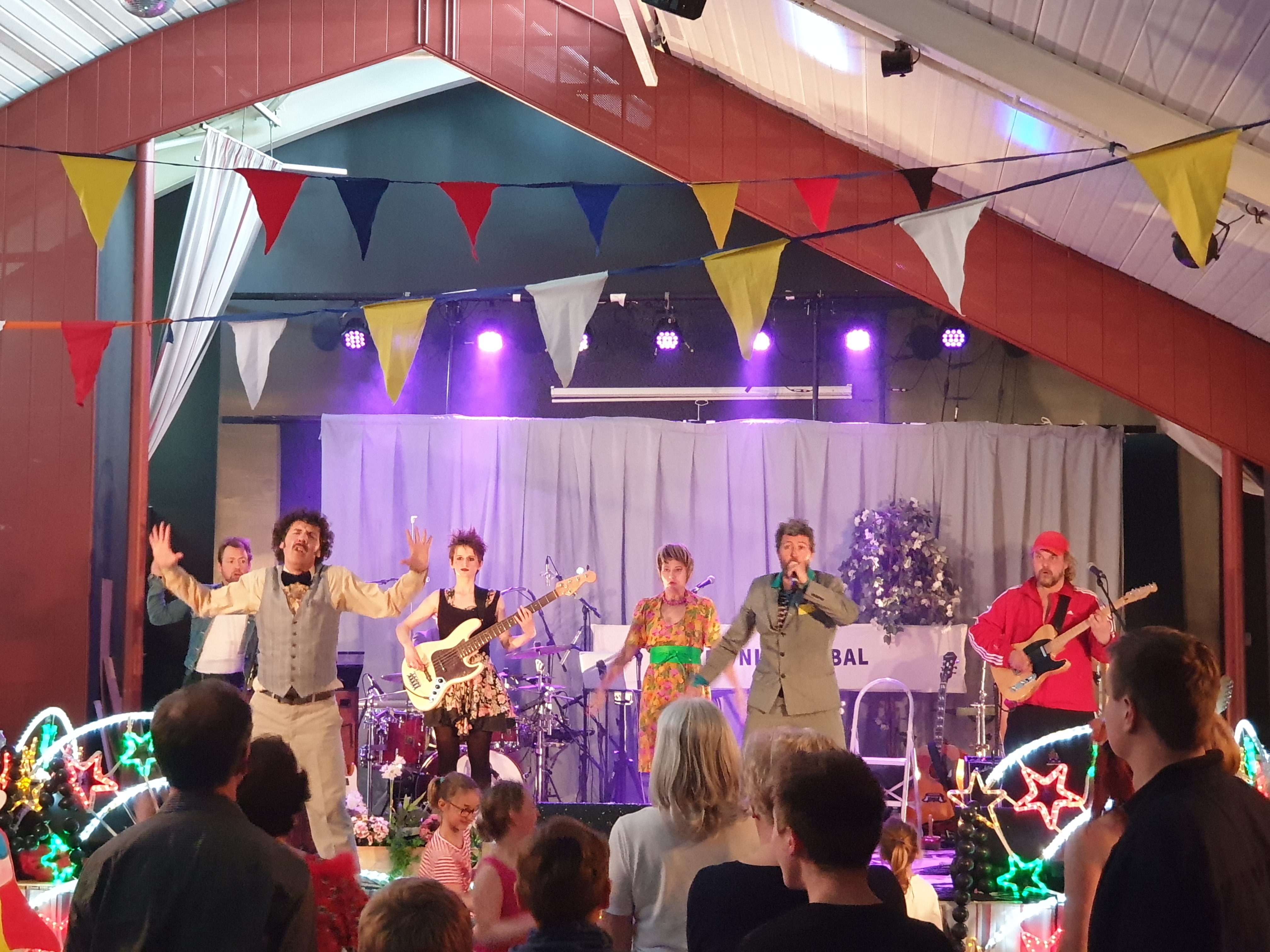 Pour clôturer le Festival Théâtre & Culturel, c’est à un bal pas tout à fait comme les autres auquel le public été convié à la salle Multispectacles de Quérénaing le Dimanche 28 Avril. La fin d’après-midi et la soirée se sont annoncées hautes en couleurs. Les six chanteurs-musiciens et nos 2 artistes ambianceurs, ont enflammé la piste durant plus de 2h30. Pour tous les participants ça été un moment de fête, de convivialité et de partage unique. Une ambiance de folie a régné sur le village de Quérénaing.