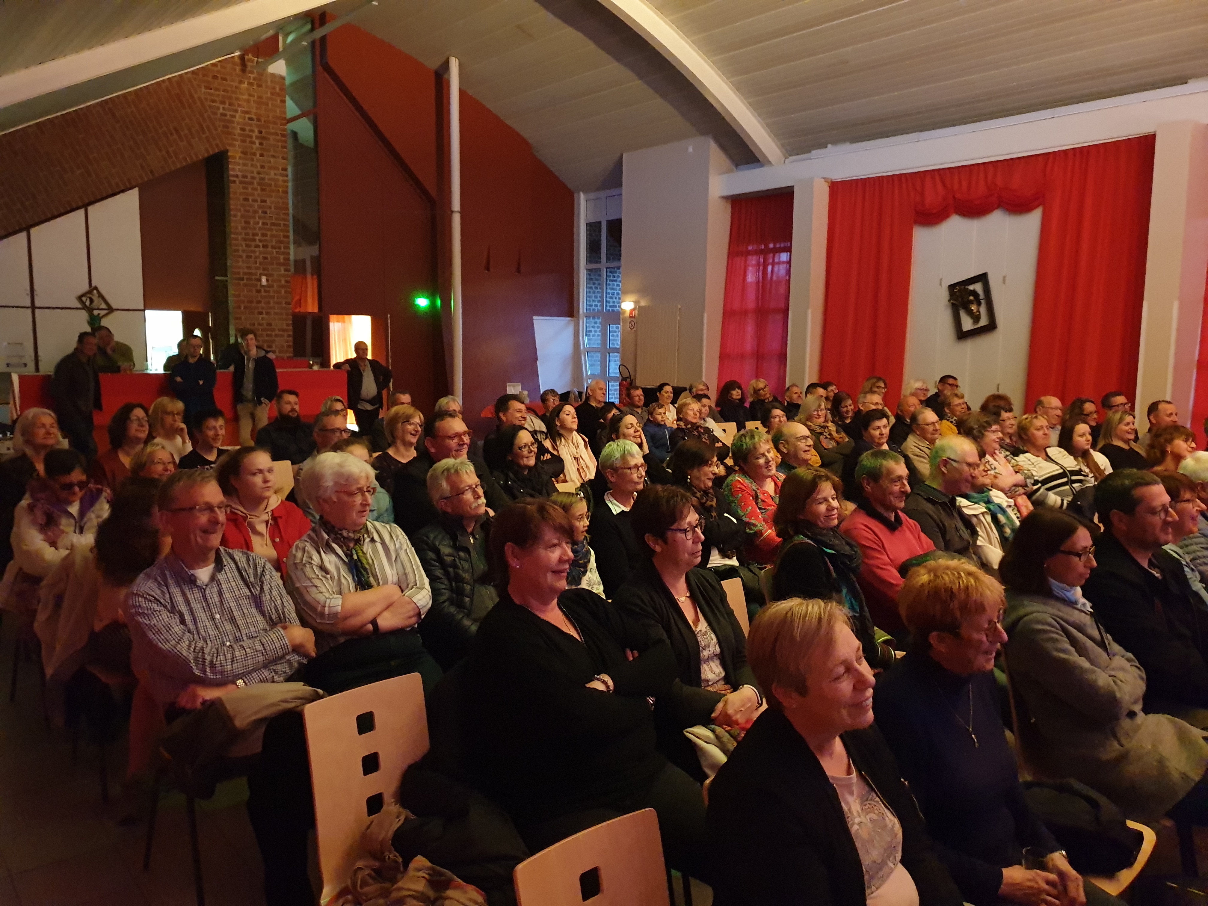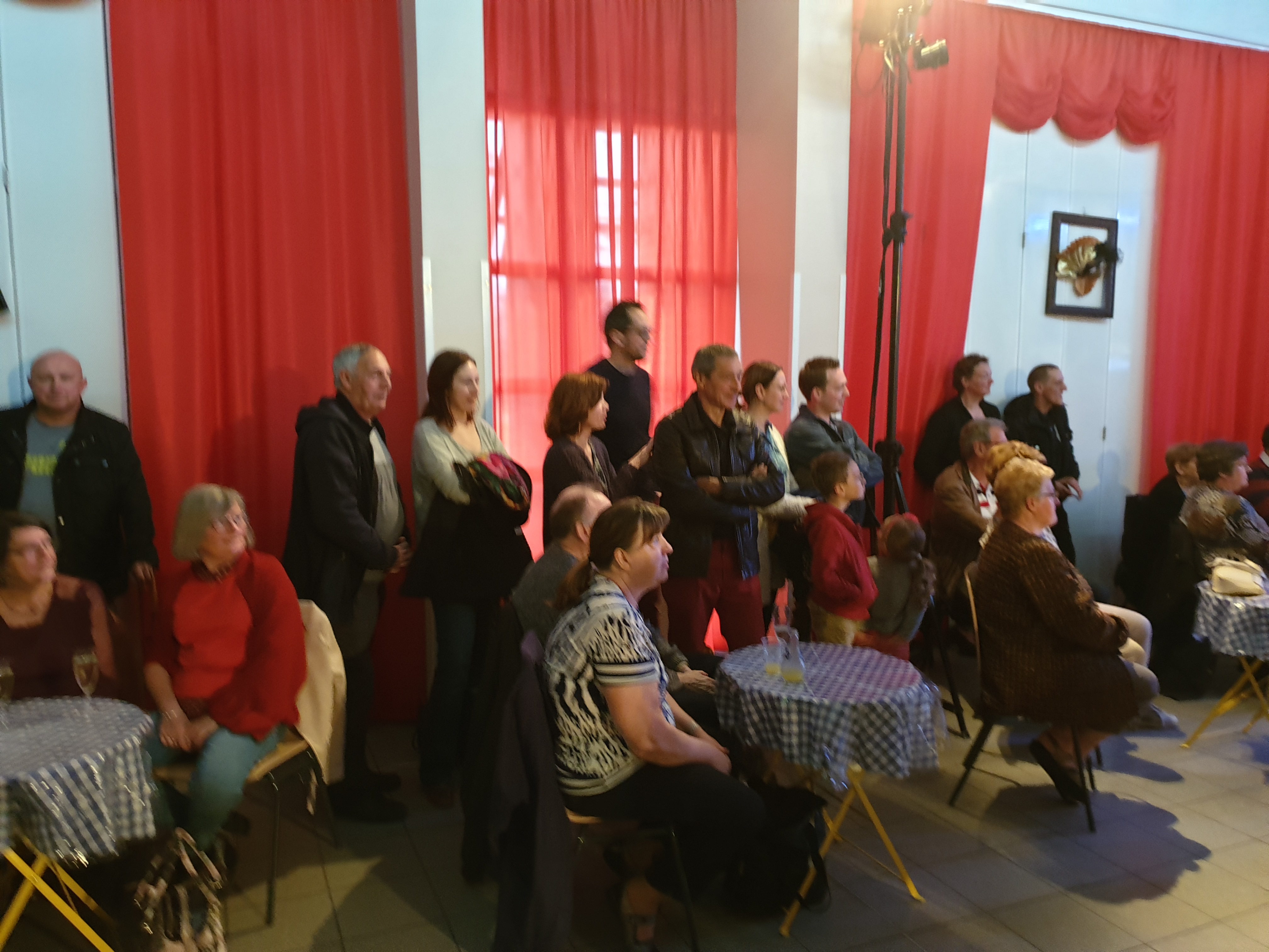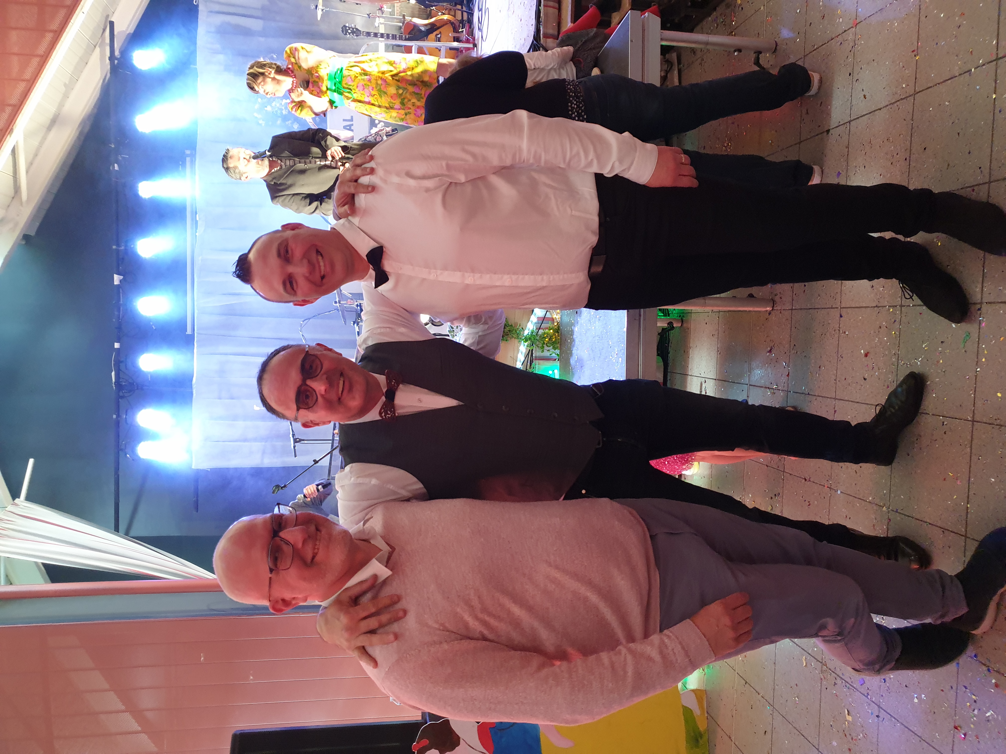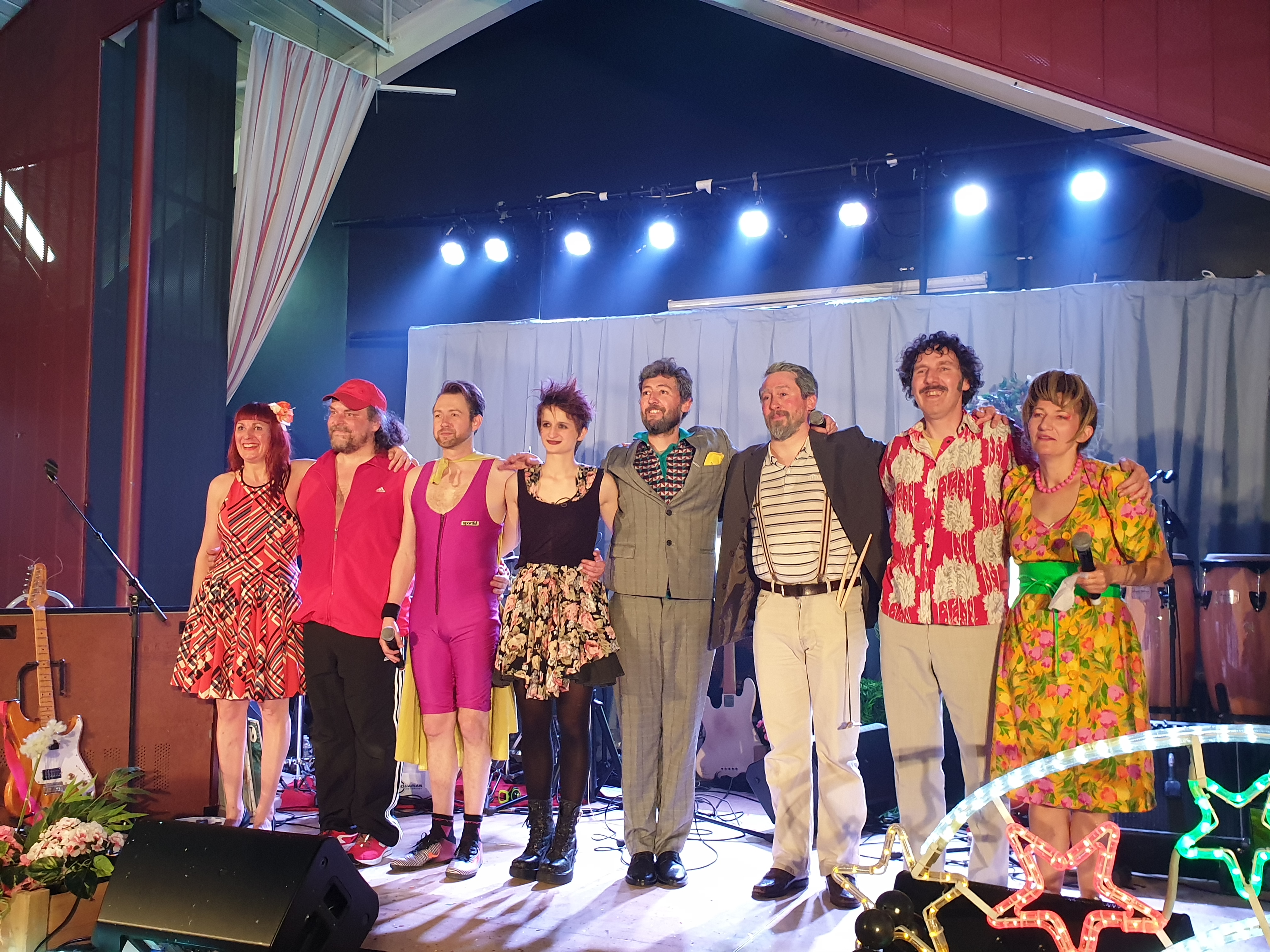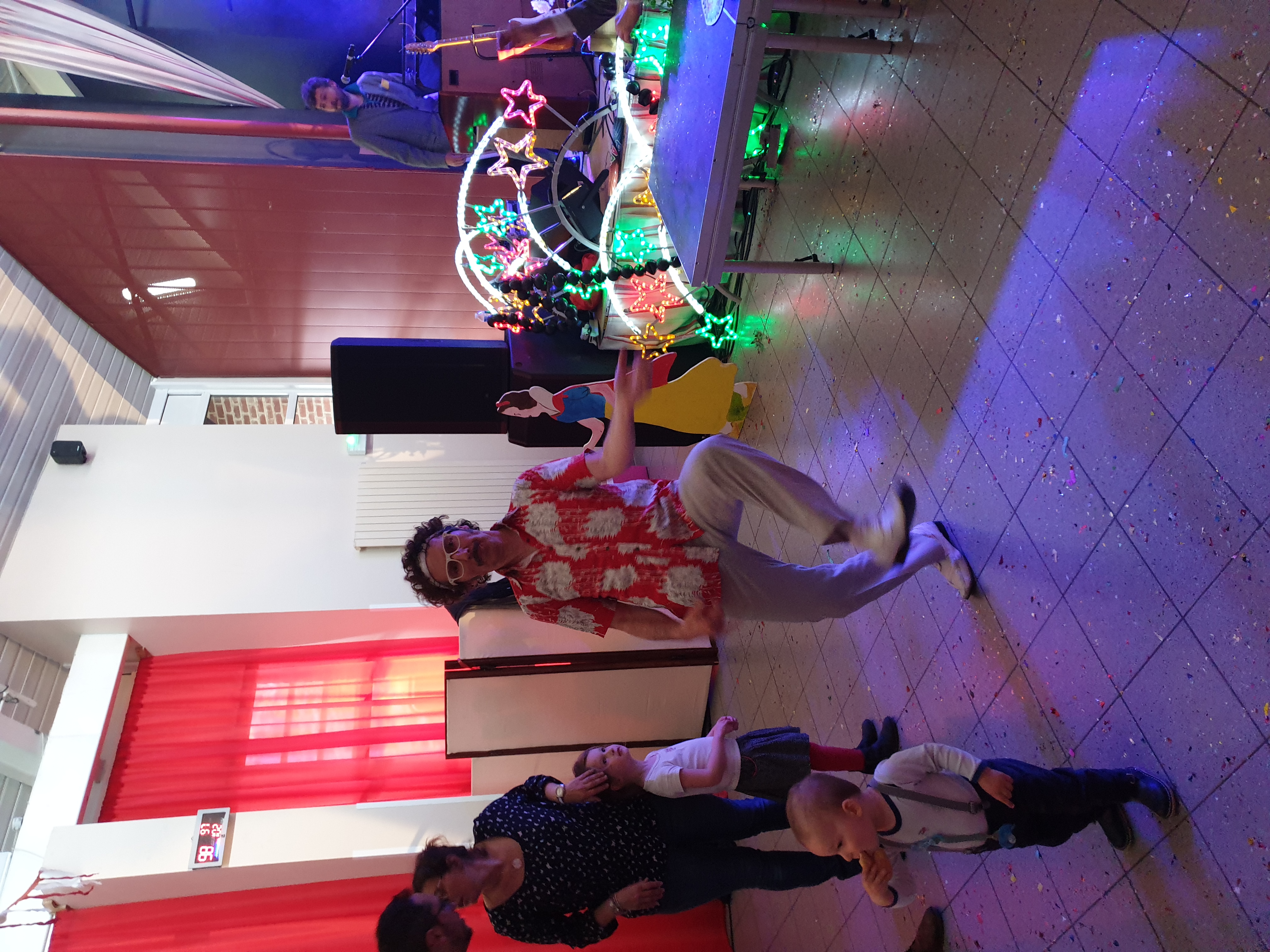 Pour clôturer le Festival Théâtre & Culturel, c’est à un bal pas tout à fait comme les autres auquel le public été convié à la salle Multispectacles de Quérénaing le Dimanche 28 Avril. La fin d’après-midi et la soirée se sont annoncées hautes en couleurs. Les six chanteurs-musiciens et nos 2 artistes ambianceurs, ont enflammé la piste durant plus de 2h30. Pour tous les participants ça été un moment de fête, de convivialité et de partage unique. Une ambiance de folie a régné sur le village de Quérénaing.