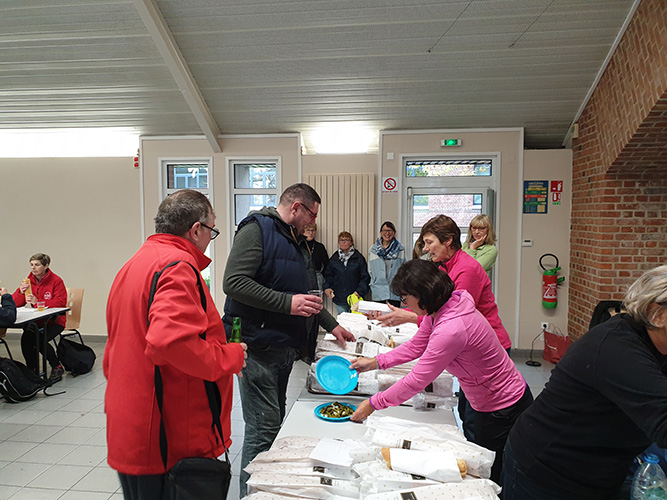 Le groupe Rando de la Famille Quérénaingeoise a organisé la 3ème Édition de la « Rando Pascal » le Dimanche 27 Octobre au départ de la salle Multispectacles de Quérénaing pour un parcours de 8 ou 12 kms au choix des participants qui étaient au nombre de 288 marcheurs pour cette 3ème année. Avant, pendant et après le parcours, les marcheurs se sont vus offrir une collation. Pour clôturer cette matinée, 3 trophées fabriqués spécialement pour cet événement sportif ont été remis, l’un au club de Fontaine-au-Pire pour le plus éloigné, un autre pour le club le plus représenté qui était « les petits pas » d’Hornaing et le dernier a été remis symboliquement à Marie-Jo, la maman de Pascal, à qui cette rando est dédiée. Un grand merci à nos deux responsables de la commission « marche », Philippe et Laurent pour l’organisation de cet événement sportif, aux membres bénévoles de cette commission, ainsi qu’à tous les membres de l’association et aux signaleurs qui ont dirigés les marcheurs et assurés leur sécurité tout au long des parcours. Merci à Monsieur le Maire et ses élus pour leur soutien et leur participation. Merci aux différents responsables de la Fédération Française de Randonnée pour leur présence et leur soutien. Merci à l’ensemble des clubs de marche et aux marcheurs présents à cette randonnée.