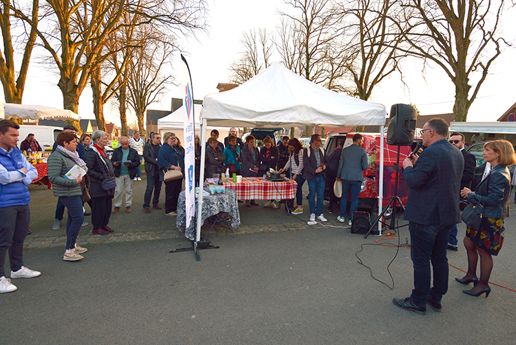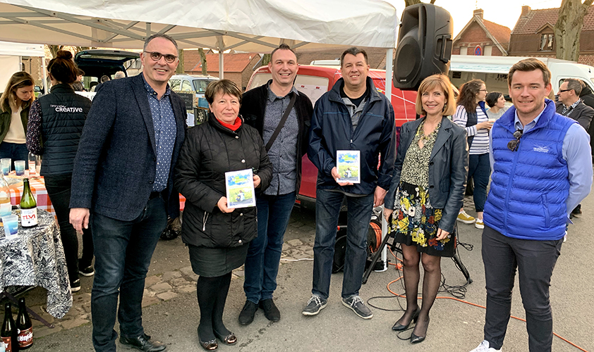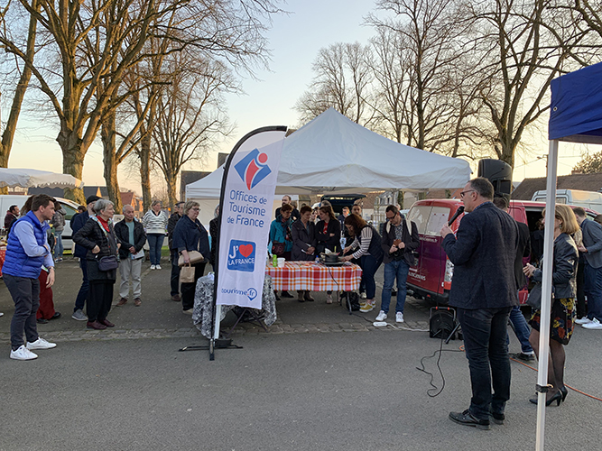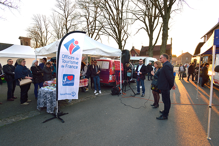 Par cette fin de journée printanière avec ce beau soleil couchant, au Marché des Saveurs Communal, Mme la Présidente de l’office de tourisme de valenciennes Métropole (CAVM) Elisabeth GONDY et son Directeur M. Pierre LABONTE ont présenté le premier guide « Vos 10 balades (ré) CREATIVES » édité donc par la CAVM ; Ce guide regroupant 10 parcours dont un sur le territoire communal, a pour vocation de faire découvrir à pied ou à vélo différents lieux situés sur l’agglomération Valenciennoise.