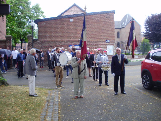 Cette cérémonie du 14 juillet s’est déroulée sous une pluie fine, en présence de musiciens de l’Ensemble Musical de Quérénaing, de membres du conseil municipal, des porte-drapeaux, de représentants des différentes associations, d’enfants et de leurs parents, Thierry GIADZ, 1er adjoint et Alain LEFEBVRE adjoint aux fêtes, ont déposé une gerbe au Monument aux Morts en mémoire des victimes tombées pour la France. S’en est suivi le discours de Thierry GIADZ et la Marseillaise jouée par l’EMQ. Le verre de l’amitié à la maison des associations a clôturé cette matinée.