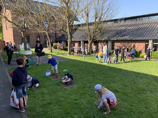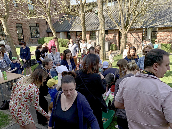 C’est sous un très beau soleil, que les enfants (environ 35 de 3 à 7 ans) ont été accueillis, ce dimanche 21 avril, avec leurs parents dans la cour de l’école pour la traditionnelle chasse aux œufs de Pâques. A 10h, Madame la cloche a sonné le top départ et tout ce petit monde s’est mis en quête des œufs cachés dans les buissons, derrière les arbres… dispersés dans la pelouse. Les paniers se sont vite remplis pour la plus grande joie des enfants et de leurs parents.