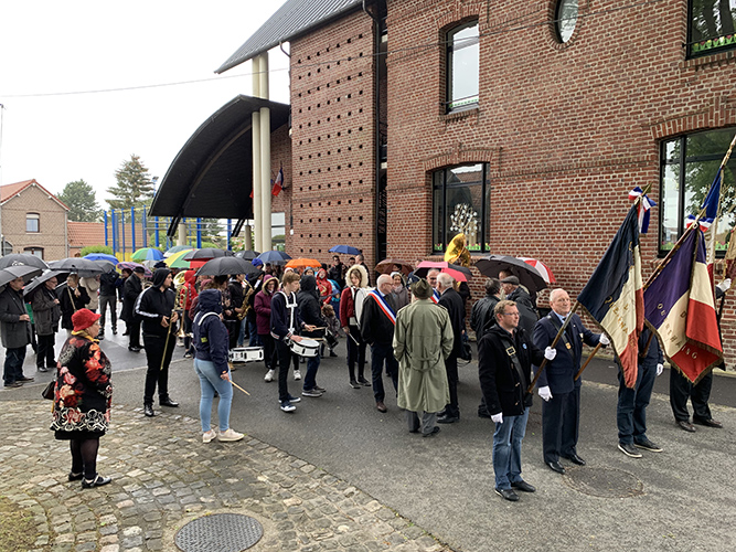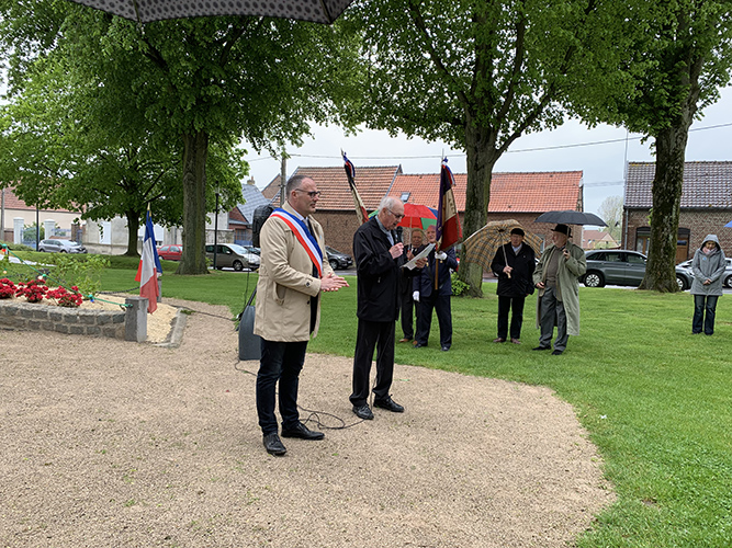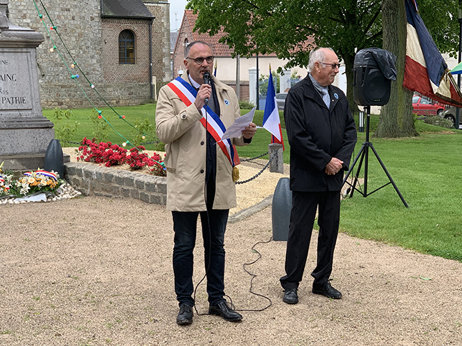 Avec l’ensemble musical de Quérénaing présent en nombre, Didier Joveniaux Maire, les Adjoints et Conseillers Municipaux, les porte-drapeaux, les présidents des différentes associations, Mme la directrice d’école Sandrine FONTAINE, les enfants ont commémoré sous une température digne d’un mois mars !, ce mercredi 8 Mai 2019, les 74 ans de la fin de la seconde guerre mondiale en Europe.