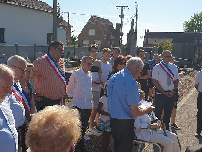 L’ organisation de ce rassemblement à sa mémoire est l’initiative de Monsieur Jacques LABBÉ, Président de l’association ACPG-CATM, ainsi que l’ensemble des anciens combattants, car les mesures de précaution prises par la législation sur les risques sanitaires n’avaient pas permis de rendre un dernier hommage à Abel, jusqu’à ce jour. Après un discours élogieux pour leur ami Abel, de la part de Monsieur LABBÉ et des anciens combattants, c’est Monsieur le Maire, Didier JOVENIAUX, qui a pris la parole en retraçant en quelques lignes la vie d’Abel, son engagement associatif et son attachement aux valeurs fondamentales de la famille, à laquelle il était fier et heureux.