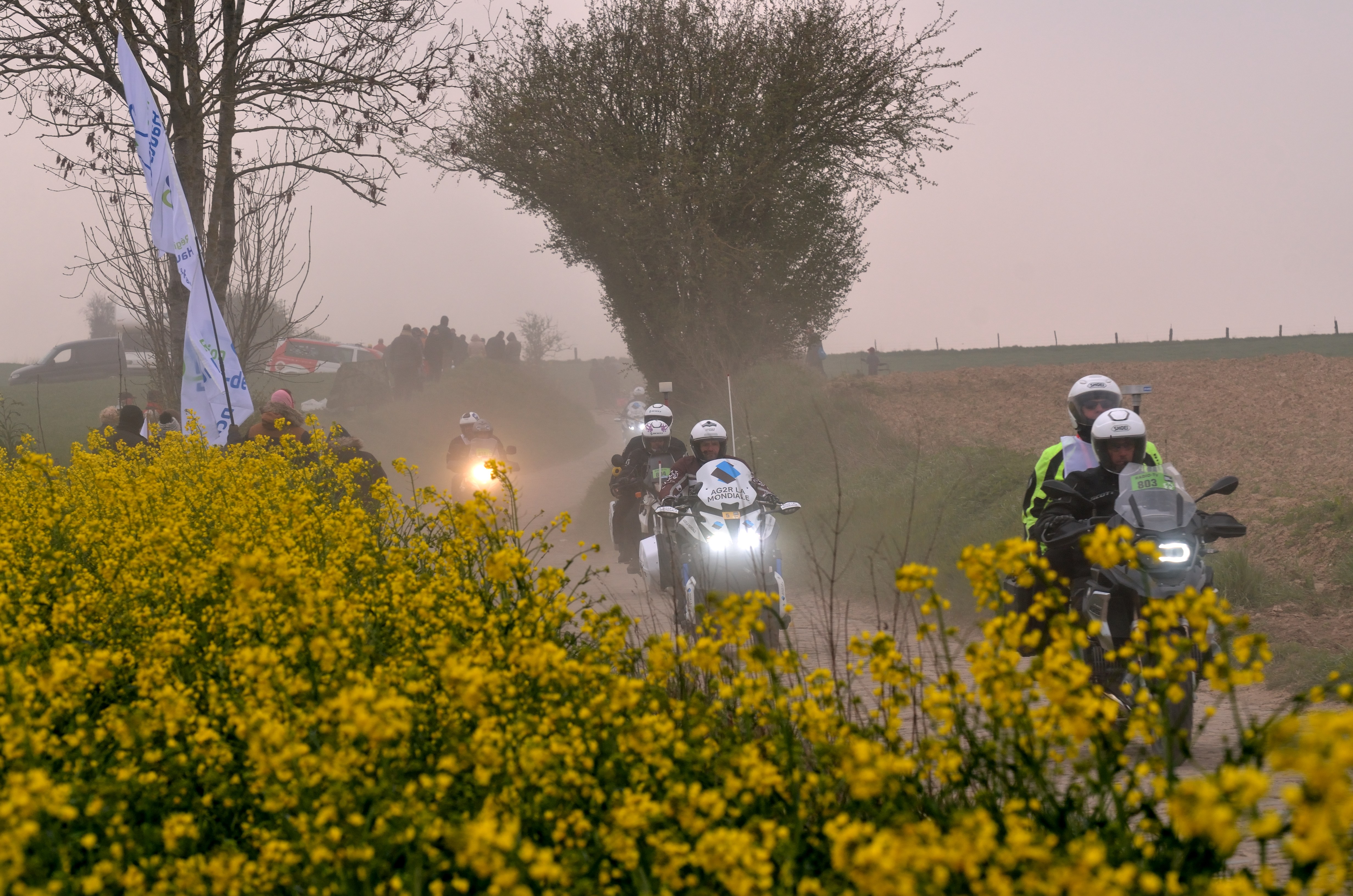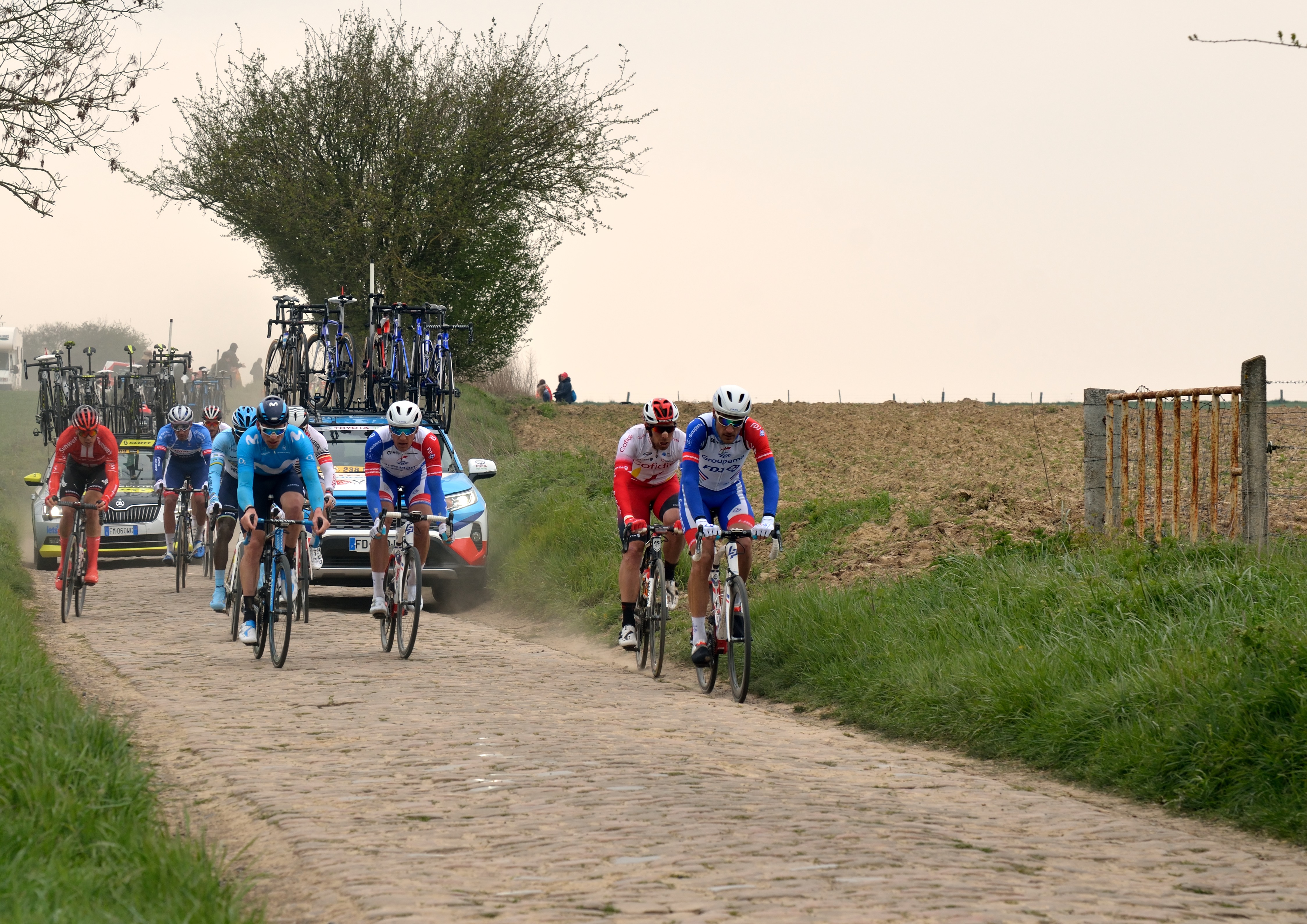 Un Paris Roubaix toujours aussi long de 257 km avec des pavés secs et une brise froide pour les nombreux spectateurs présents malgré le soleil qui jouait à cache-cache avec les nuages, et qui a vu les coureurs affronter la poussière sur nos pavés avec de-ci de-là des zones de boue qui n’arrangeaient rien, nous sommes bien dans « l’enfer du Nord » !