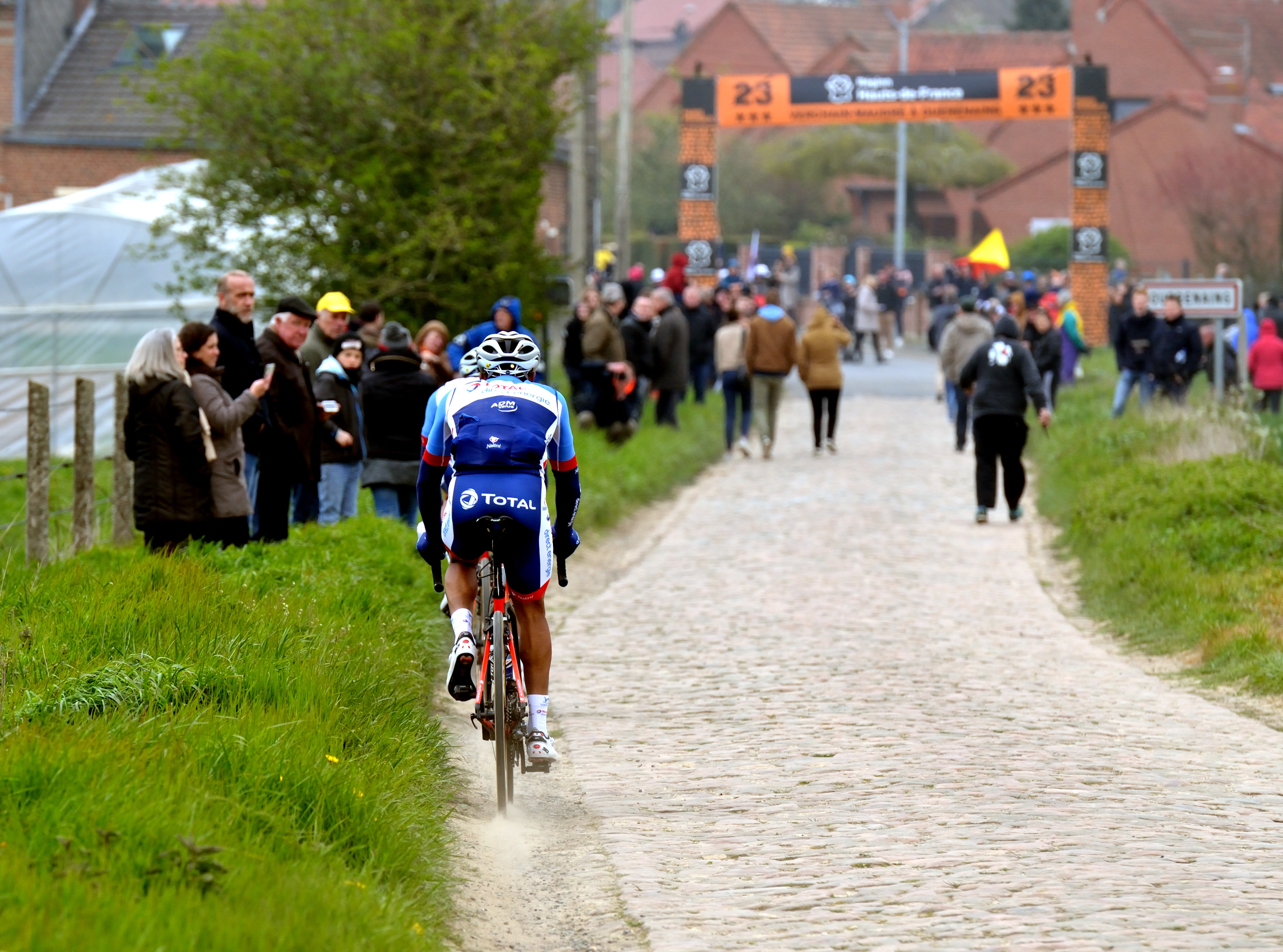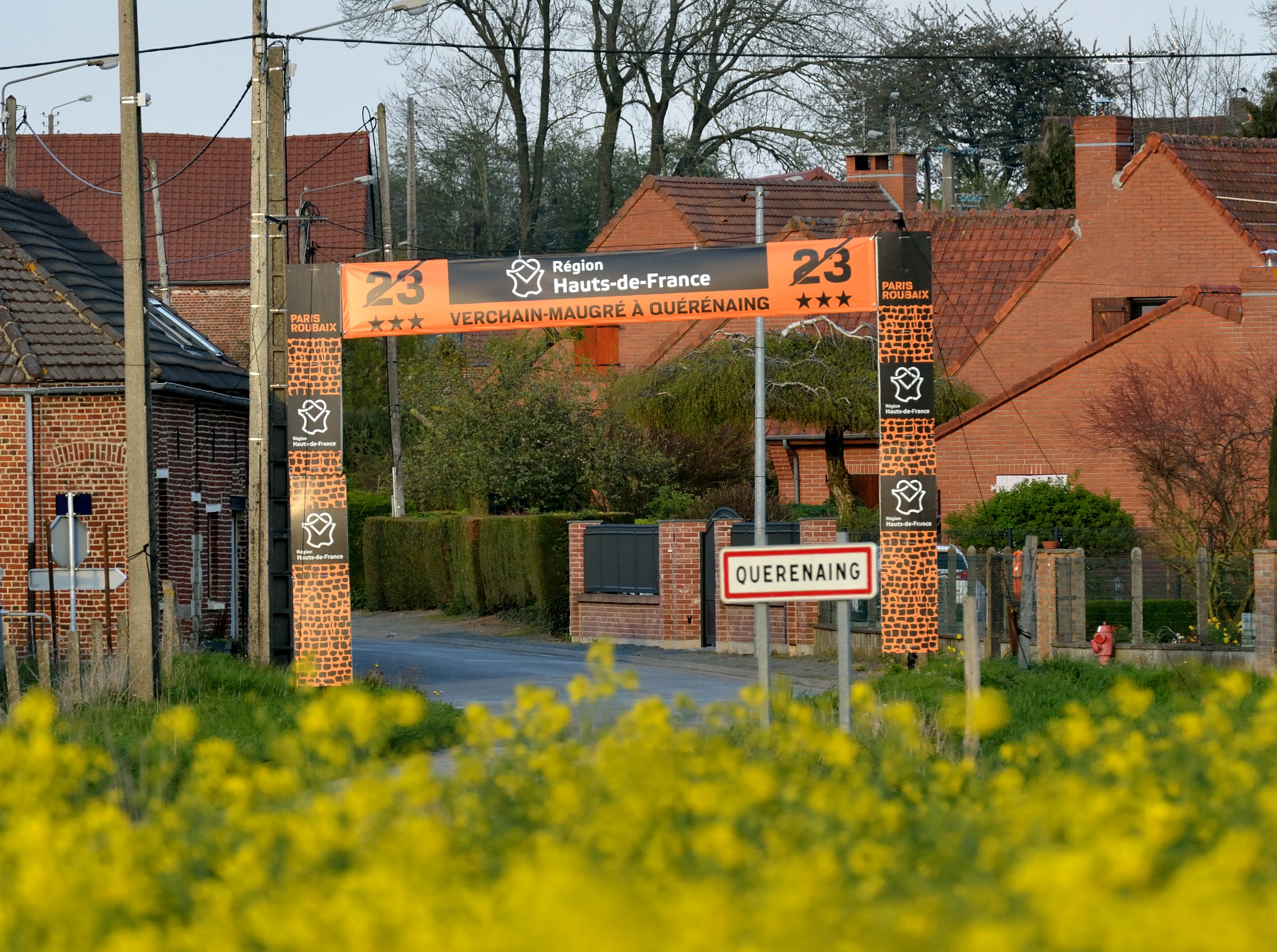 À noter qu’en « mise en bouche » pour les Quérénaingeois, la veille de la course, le challenge Paris Roubaix 2019 a vu aussi le passage des nombreux amateurs de différent pays venir se mesurer sur ces mêmes secteurs pavés du village, avec une météo bien meilleure pour le coup que la compétition pro.