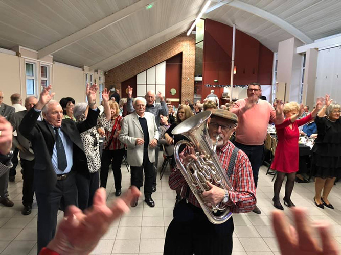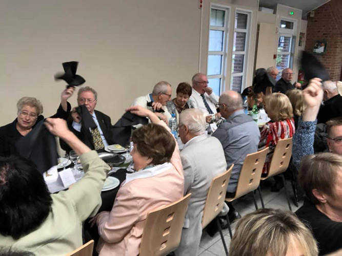 Le repas servi par le traiteur Dujardin et l’animation assurée par l’orchestre « les copains d’abord » François LORRIAUX et son groupe ont permis à tous de passer une très belle après-midi. Beaucoup d’ambiance et de bonne humeur ! Nous avons pu apprécier également Olivier et Marc de la compagnie de théâtre « La Réplique »