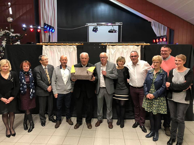 Petite surprise pour Mme Jeanine POURPOINT et M.Claude LANTOINE qui, au cours du repas, ont été appelés par Alain LEFEBVRE afin de recevoir un coffret cadeau. C’était l’occasion de mettre à l’honneur les plus anciens présents au repas.