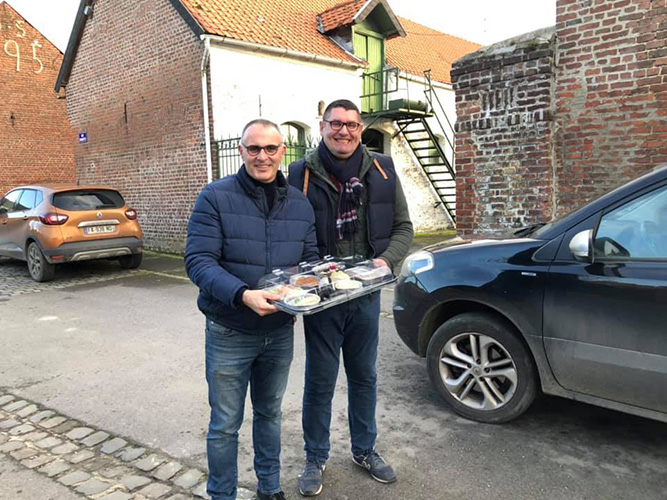 Cette année encore, 42 personnes âgées qui pour raison de santé ne pouvaient se rendre le lendemain à la salle, ont reçu leur repas à domicile, portés par Didier JOVENIAUX, des membres du conseil municipal (Sarah MAITTE, Alain LEFEBVRE, Thierry GIADZ). Beau moment de partage et de convivialité.