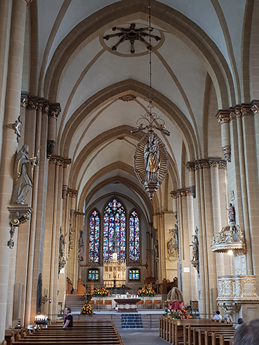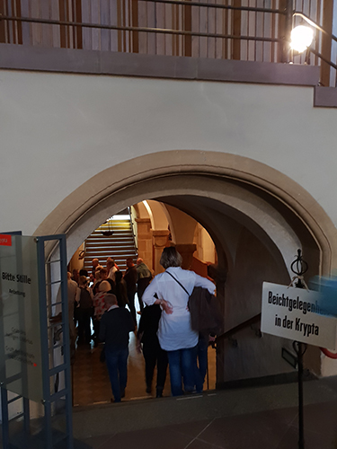 Le dimanche matin, après un copieux petit-déjeuner à l’allemande (pain, fromage, charcuterie, oeufs, fruits… etc), nous nous sommes rendus à la messe pour honorer notre Saint commun : Saint Landelin.