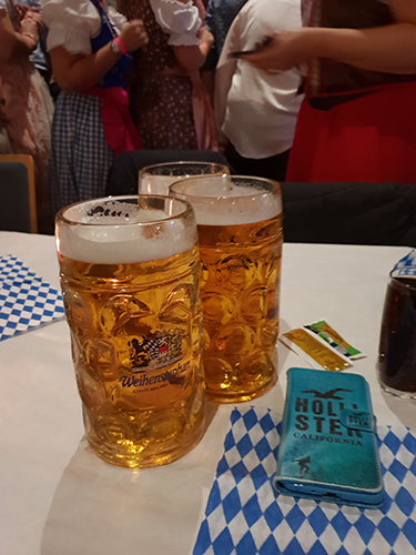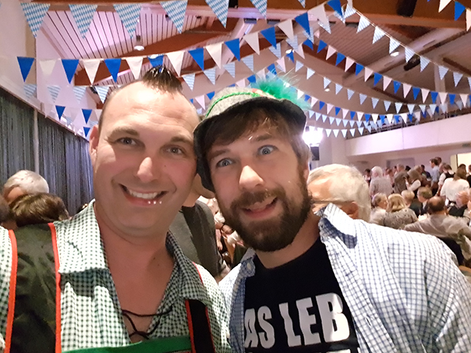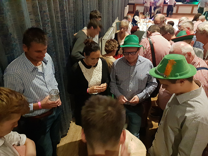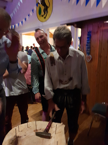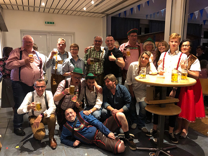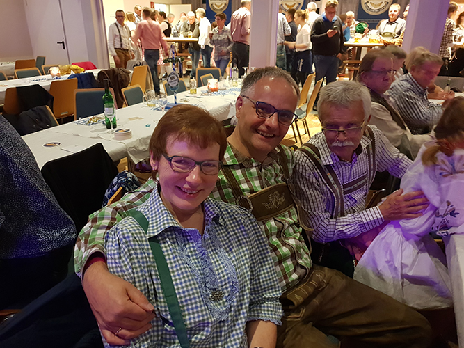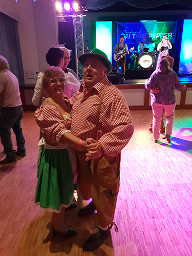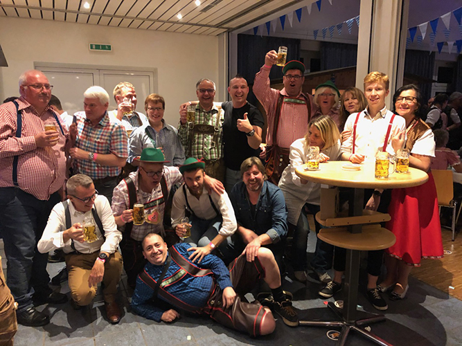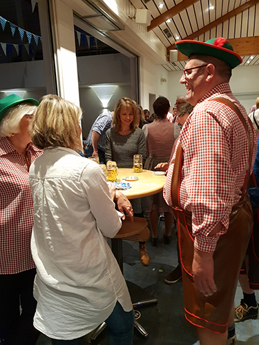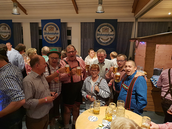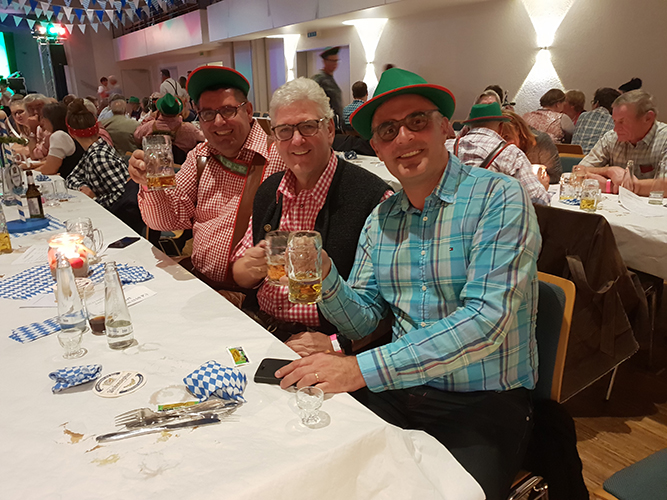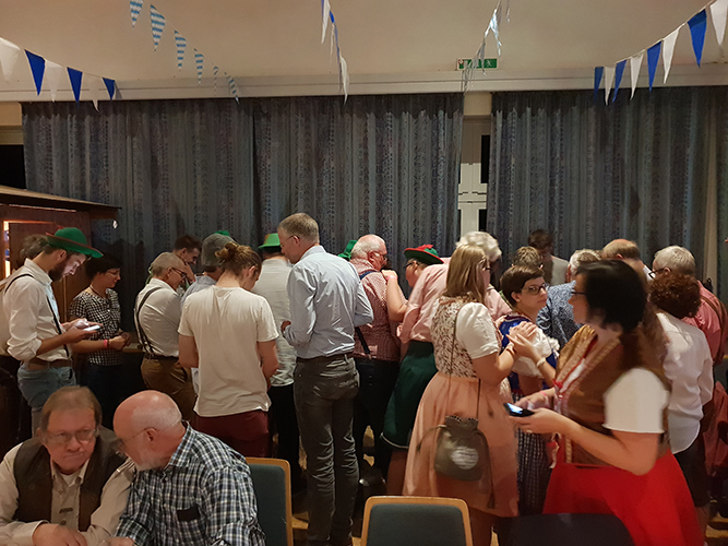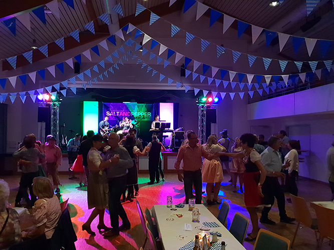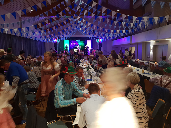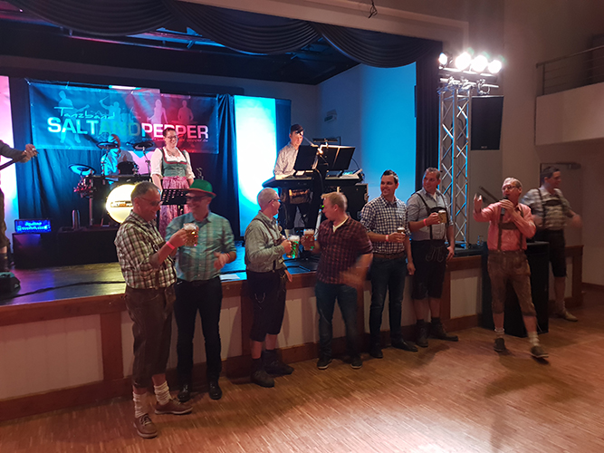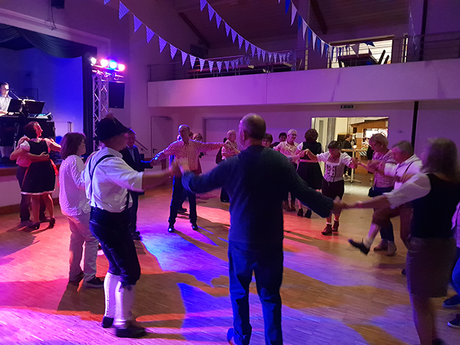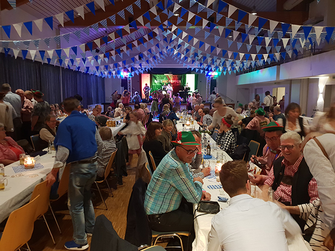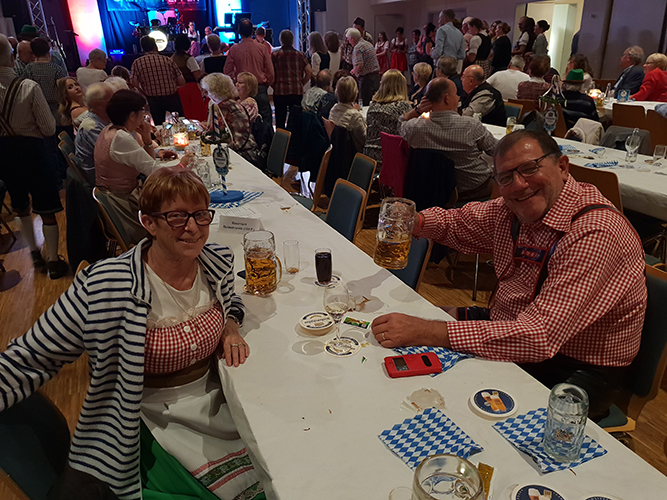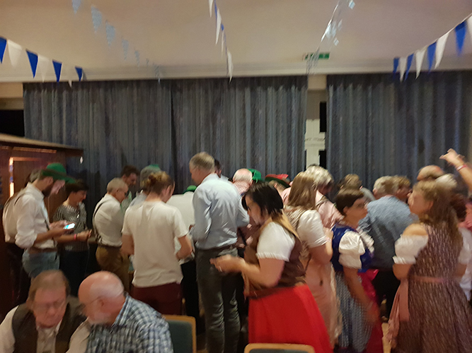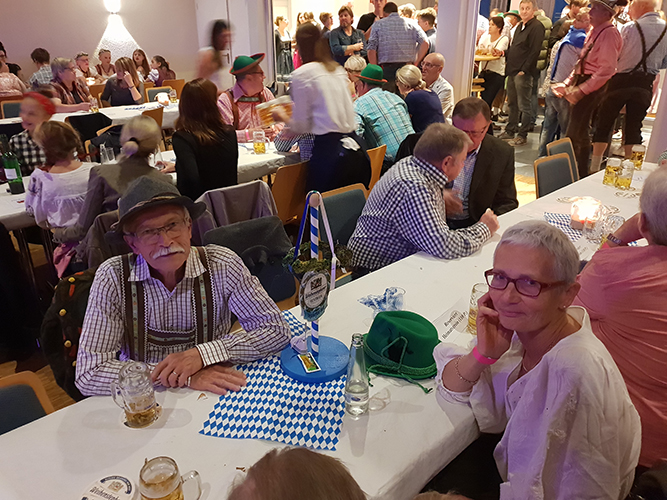 Puis, après quelques instants de repos dans les familles en fin d’après-midi, les quérénaingeois et leur famille d’accueil, se sont rendus, dans la salle communale, à la soirée de l’Oktoberfest qui est la fête