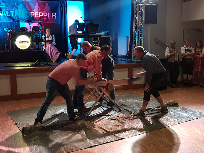 – concours du sciage d’un tronc d’arbre auquel monsieur le Maire, monsieur Didier Joveniaux a participé en duo avec monsieur Paul Benlert, le Président allemand de l’association organisatrice. Un jeu dans lequel ce duo a été fort valeureux et a gagné le deuxième prix.